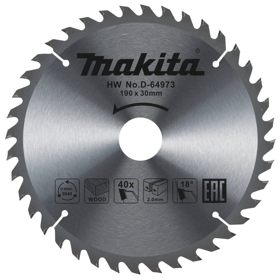 Диск пильный по дереву Makita 190x30мм 40T (D-64973) с твердосплавными напайками предназначен для дисковых и торцовочных пил. Имеет длительный срок службы, подходит для любых сортов древесины, может использоваться для продольного и поперечного реза.