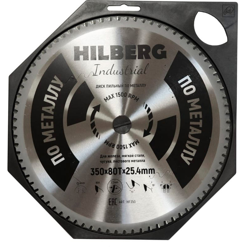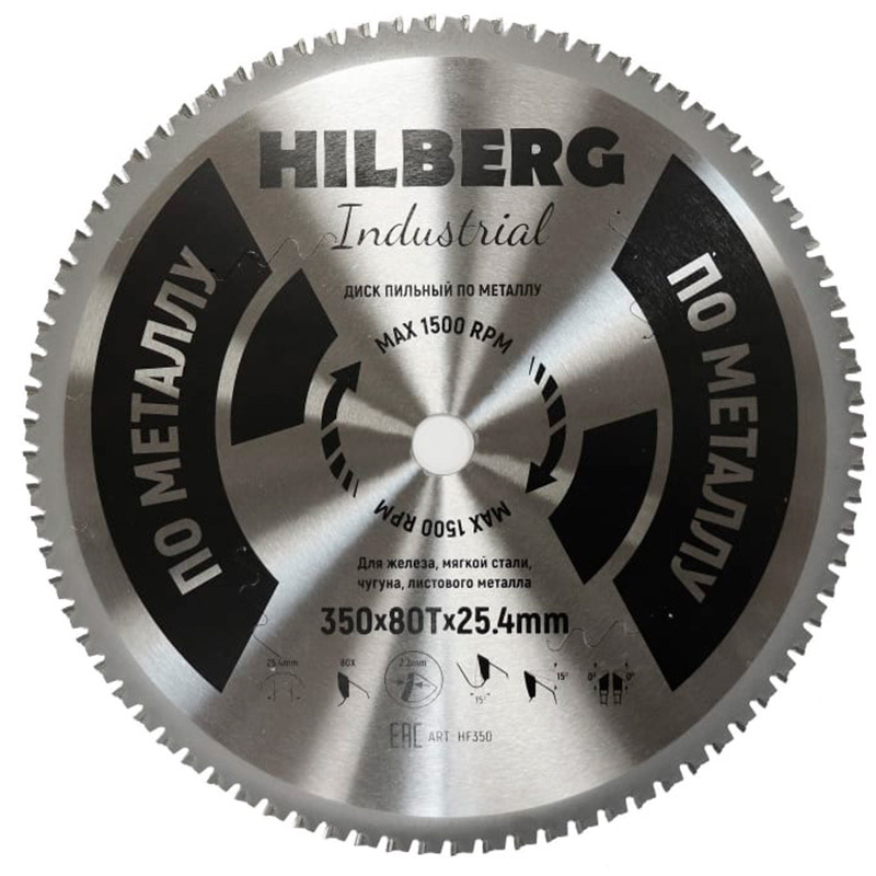 Диск пильный по металлу Hilberg Industrial 350x25.4мм 80Т (HF350) для точного и чистого холодного реза, на низких оборотах без искр, по металлу, стали и чугуну. Корпуса дисков изготовлены методом лазерной резки стали.