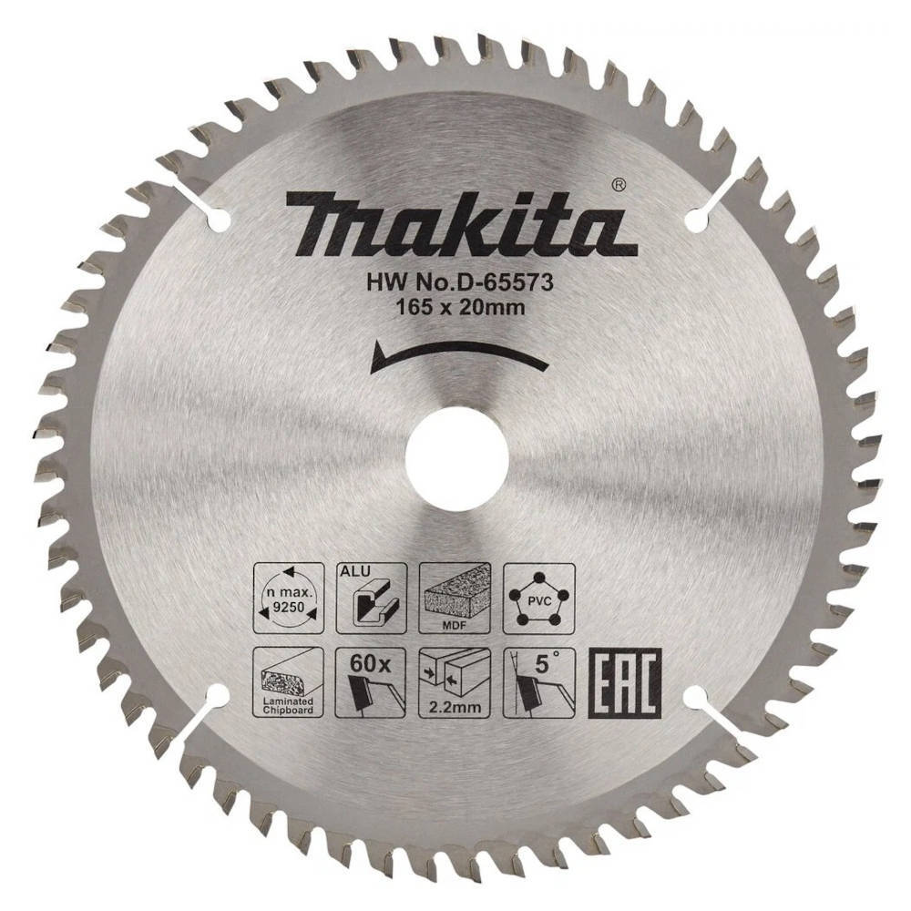 Диск пильный универсальный Makita 165x20мм 60T (D-65573) может использоваться для резки алюминия, МДФ, ПВХ, древесно-стружечных плит. Изготовлен из высококачественных материалов, обладает высокой износостойкостью и долговечностью.