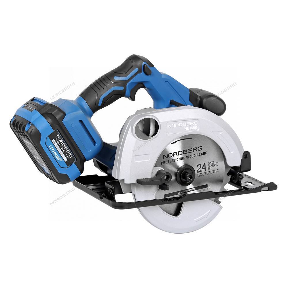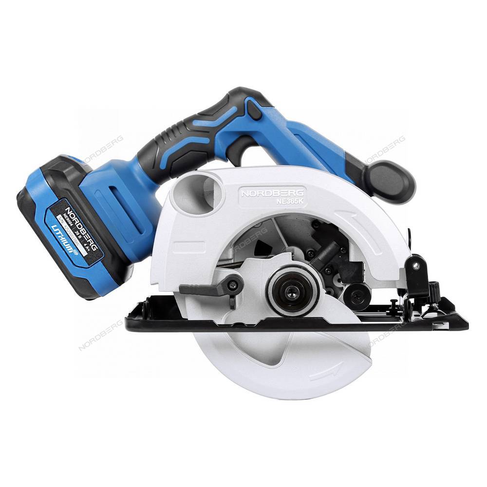 Циркулярная аккумуляторная пила NORDBERG NE365K – универсальный режущий инструмент для выполнения ремонтных и строительных работ в автомастерских, СТО, производственных предприятиях и для бытового использования.