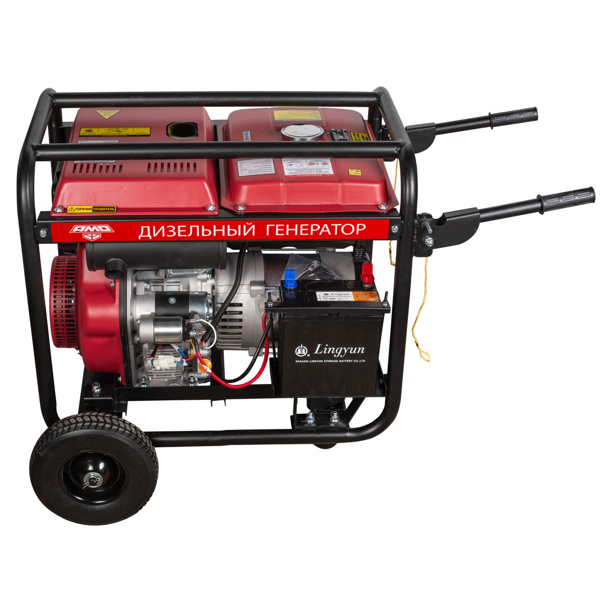 Дизельный генератор AMO ADG 6000EF3 - универсальная мобильная электростанция, мощностью 5,5 кВт, главное преимущество которой заключается в возможности переключения режимов работы альтернатора между 220В и 380В. На практике такая особенность означает, что: полная мощность установки доступна как в однофазном, так и в трехфазном формате; можно организовать питание любого оборудования, в том числе промышленного; не нужно тратить время на планирование схемы подключения, чтобы избежать перекоса фаз и повреждения обмотки. Легкий запуск Дизель-генератор AMO ADG 6000EF3 оснащен электростартером, что позволяет быстро и удобно запускать ее поворотом ключа. Такое решение особенно актуально на выезде и для решения задач, требующих частых перестановок. Электростартер питается от аккумулятора, который подзаряжается в процессе работы. Возможность ручного запуска сохранена, она может пригодиться в непредвиденных ситуациях. Высокая мобильность Транспортировочный комплект из ручек и колес значительно упрощает перемещение агрегата и разгрузочно-погрузочные операции. Колеса увеличенного, по сравнению со стандартной моделью, размера лучше справляются с неровностями, а опорные площадки с амортизирующими подушками гасят вибрации от работающего двигателя и препятствуют опрокидыванию. Встроенный регулятор напряжения Дизель-генератор AMO ADG 6000EF3 оснащен автоматическим стабилизатором тока (AVR). Эта система не допускает просадок напряжения, которые могут возникать при подсоединении новых устройств. Наличие такого стабилизатора необходимо для энергообеспечения современной техники. Выход постоянного тока Разъем 12 В может выручить в самых разных ситуациях. Так, например, от них можно зарядить аккумулятор автомобиля и другой техники, или запитать устройства, рассчитанные на постоянный ток. Безопасность Системы защитного отключения обеспечивают сохранность как электростанции, так и подключенной нагрузки при возникновении опасных ситуаций - короткого замыкания или перегрузки. Предусмотрена блокировка запуска двигателя и мгновенная остановка дизельного генератора AMO ADG 6000EF3 при недостаточном уровне масла.