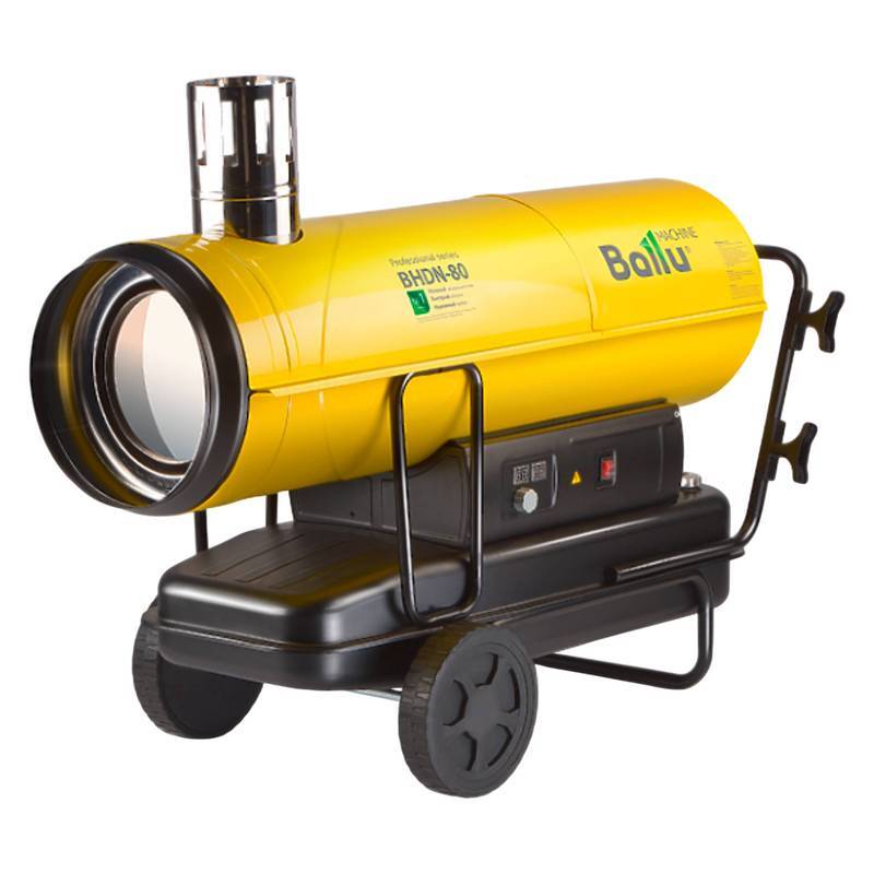 Дизельный воздухонагреватель Ballu BHDN-80 непрямого нагрева – мощный обогреватель с объемом бака 68 литров, рассчитанный на эффективный обогрев помещения площадью до 600м². Максимальная производительность прибора достигает 2000м³/час. Относится к аппаратам с непрямым нагревом, то есть выхлопные газы могут отводиться за пределы обогреваемого помещения с помощью дымохода. Несомненным преимуществом подобных устройств, по сравнению с пушками прямого нагрева, является «чистое» тепло, которое позволяет использовать аппараты в помещениях, где постоянно находятся люди. Высокая безопасность обеспечивается благодаря многоступенчатой системе защиты от перегрева, контролю стабилизации пламени. Двухуровневая система очистки топлива гарантирует надежную работу оборудования.