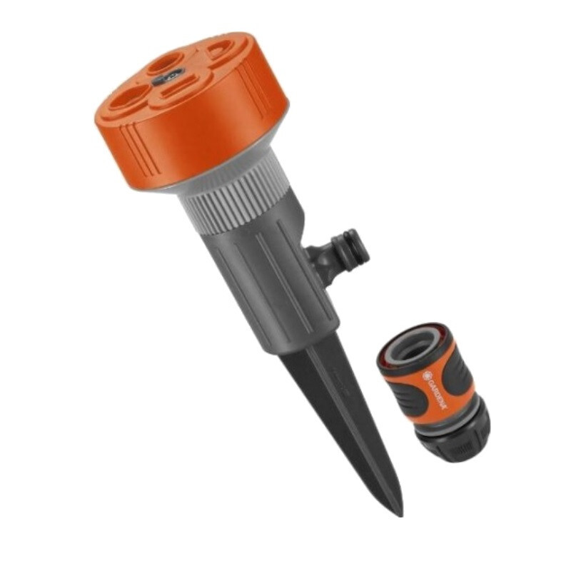 Дождеватель Gardena Twist круговой предназначен для равномерного орошения территории до 100м². Легко подключается к системе полива благодаря быстросъемному соединению. Поворачивая диск дождевателя, можно установить один из 4 режимов орошения. Держатель на колышке надежно фиксируется в земле, защищен от опрокидывания. Рабочее давление 2-4бар, максимальное 6бар. Расход воды можно регулировать от 350 до 1300 литров в час. Диаметр соединения 16мм. Режимы орошения: Круг: øмакс.10м/80м²; Полукруг: r = макс. 8м/100м²; Площадь: макс. 8x8м/64м²; Прямоугольник: макс.16x2м/32м².