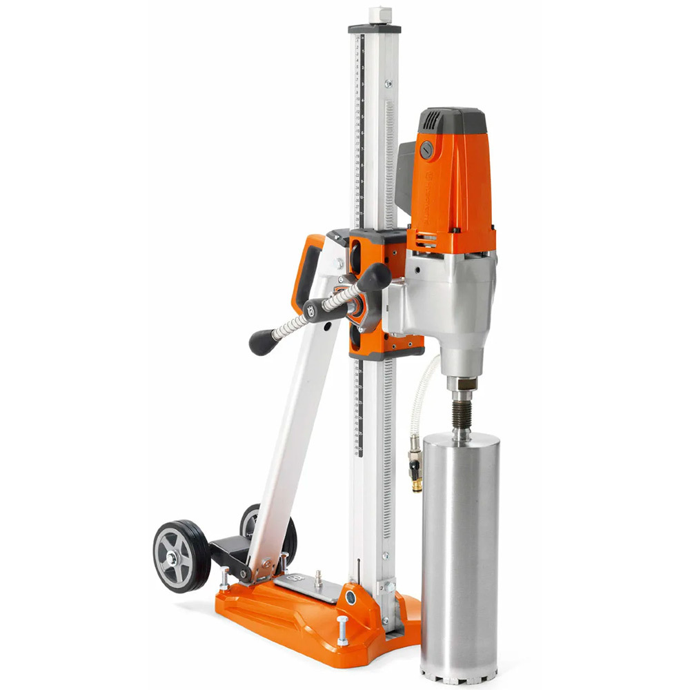 Дрель алмазного сверления Husqvarna DMS 240 со стойкой является полноценным бурильным инструментом, предназначенным для выполнения широкого спектра работ. Эта модель занимает первое место по производительности среди брендовых инструментов данной категории. Стойка может наклоняться под разными углами, что позволит мастеру оптимально настраивать работу дрели. Она снабжена удобной ручкой для переноски и специальными колесами, отдельно поставляемыми в комплекте, которые облегчат транспортировку оборудования по площадке. Электронная защита от перегрузки сохранит конструкцию инструмента от перегрева и продлит его срок службы.