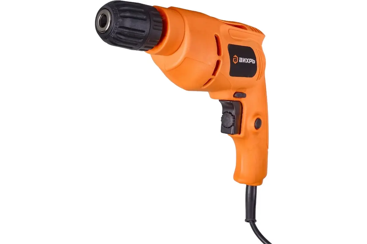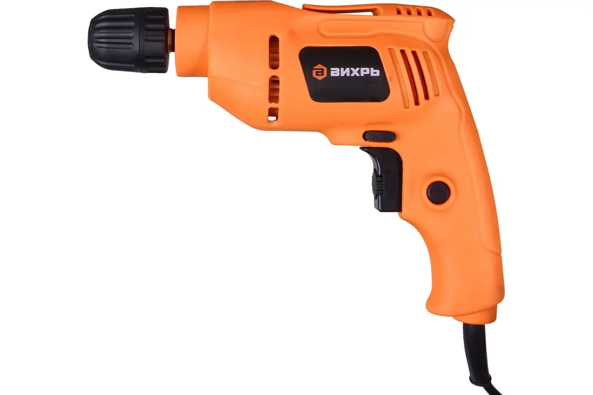 Для удобства в модели Вихрь Д-550Б использован быстрозажимной патрон, который позволяет практически мгновенно и без проблем осуществлять смену оснастки, а также специальным реверсивным механизмом, исключающим проблемы с застреванием сверла при сверлении. Имеется функционал, позволяющий регулировать частоту вращения, который обеспечивает настройку дрели в зависимости от плотности и толщины материала. Редуктор односкоростной. Скорость вращения регулируется кнопкой выключателя. Есть фиксация кнопки включения, что очень удобно во время длительных рабочих сессий. Модель Вихрь Д-550Б оснащена эргономичной рукояткой, обеспечивающей надёжное удержание инструмента. Напряжение питания сети – 220В. Вес дрели – 1.3кг.