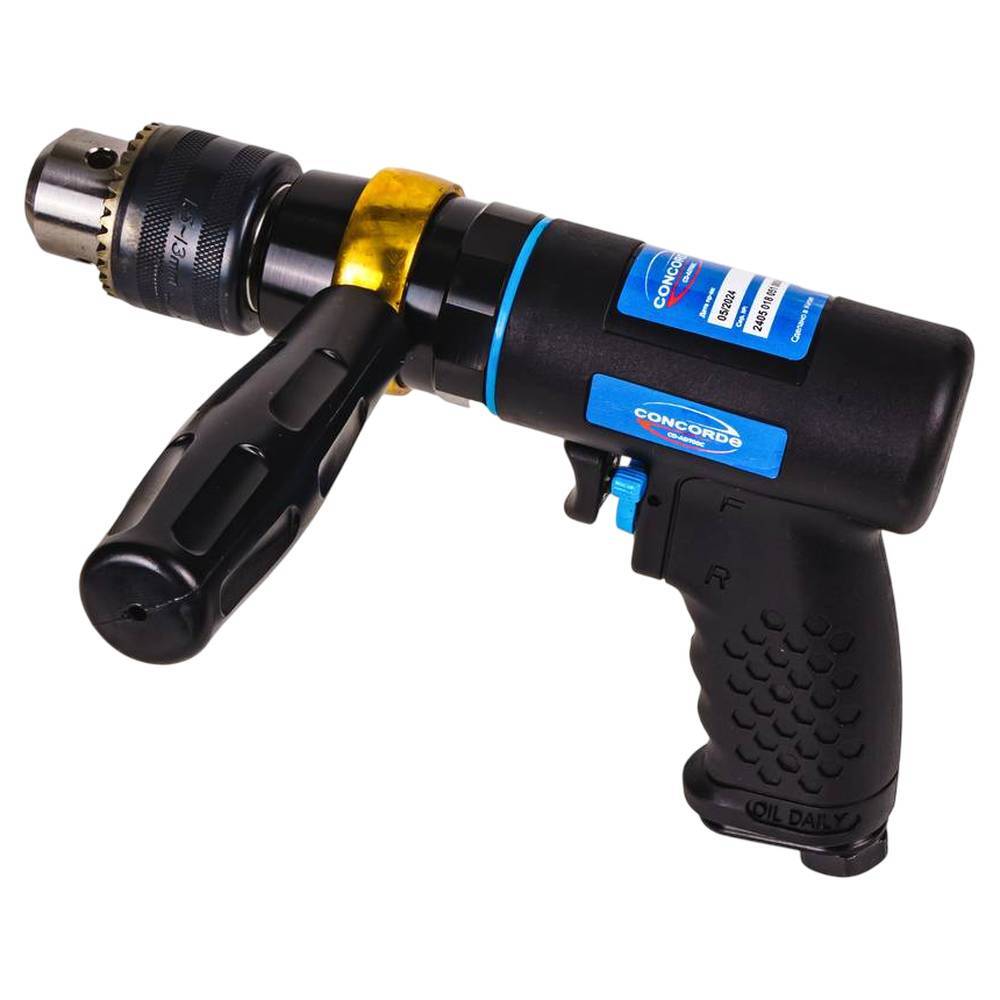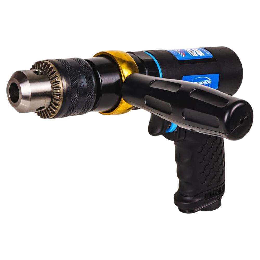Дрель пневматическая применяется для сверления отверстий в различных материалах. Рукоять с нескользящим покрытием (резиновая накладка), а также выступ на ее основании предотвращает выскальзывание инструмента из руки оператора.