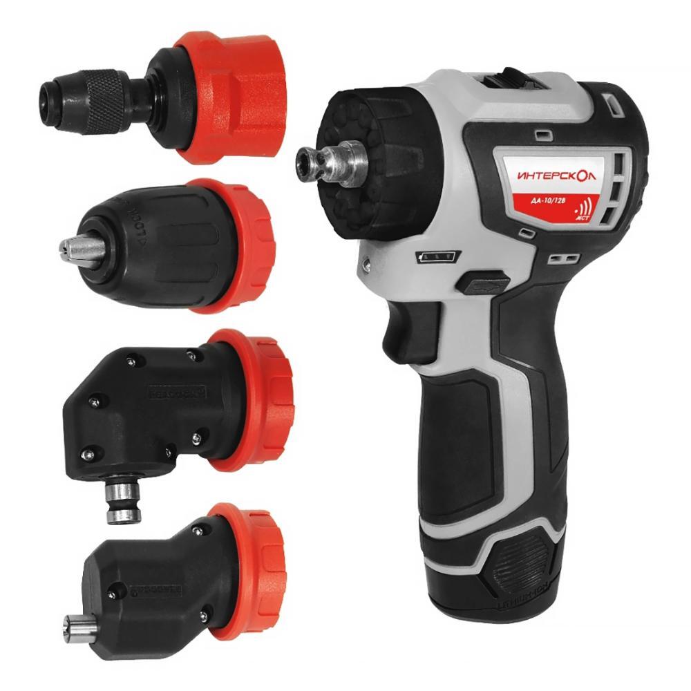Дрель-шуруповерт аккумуляторная ИНТЕРСКОЛ ДА-10/12В 36 КомбиМАКС (АКБ и ЗУ) - самый компактный в своем классе профессиональный шуруповерт с широким диапазоном применения за счет съемного сверлильного патрона, гнезда с магнитным держателем бит в шпинделе, эксцентриковой и угловой насадок для работ в самых труднодоступных местах, а также переходника с механическим зажимом для шестигранных хвостовиков 1/4". Сочетание короткой базы и набора насадок делает его незаменимым при монтажных операциях, сборке мебели, монтаже инженерных коммуникаций и т.д.