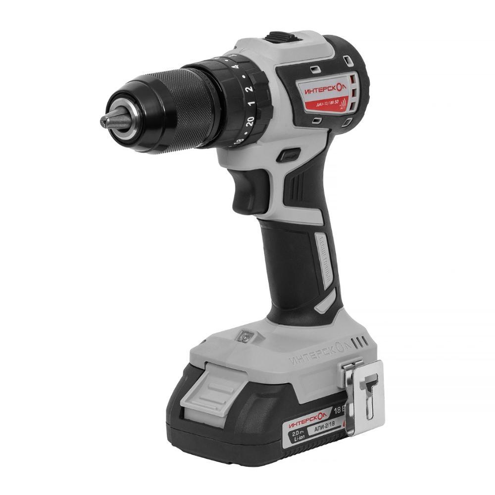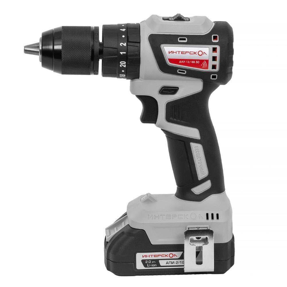 Дрель-шуруповерт ударная аккумуляторная ИНТЕРСКОЛ ДАУ-13/18В 50 - профессиональная аккумуляторная двухскоростная ударная дрель-шуруповерт с бесщеточным (вентильным) двигателем. Модель оптимально сбалансирована по весу, размерам и мощности для серийного сверления отверстий, в том числе с осевым ударом (при работе с легкими сортами бетона, кирпичом, натуральным либо искусственным камнем, керамикой и т.д.), выполнения больших объемов работ с крепежом и прочих операций. Питается от литий-ионных (Li-ion) аккумуляторных батарей слайдерного типа единой универсальной аккумуляторной платформы АПИ 18 В, также совместима с бивольтовыми аккумуляторными батареями АПИ 18/36 В.