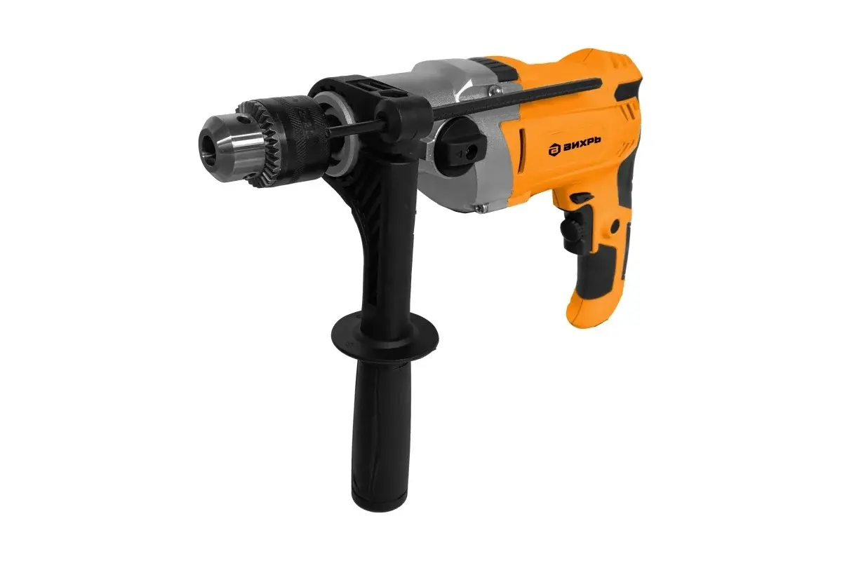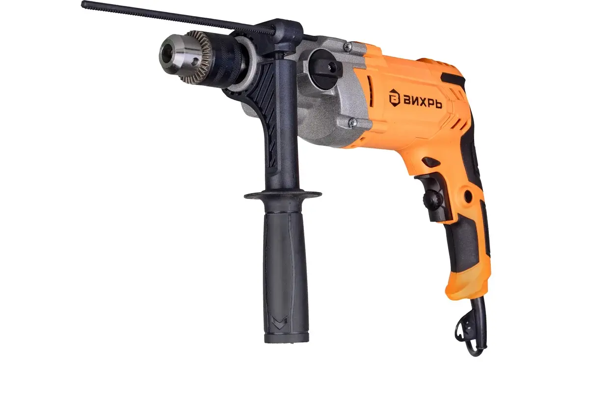 Дрель Вихрь ДУ-1200/2 получила реверс исключающий застревание сверла в материале, систему регулирования оборотов, дополнительную рукоятку и механизм фиксации кнопки включения. Внутренние детали дрели расположены в прочном металлическом корпусе. Универсальность инструмента состоит в том, что дрель можно использовать в качестве шуруповёрта, а также как миксер для смешивания лакокрасочных материалов. Соответствующие насадки в комплект не входят. Вес инструмента – 3 кг.