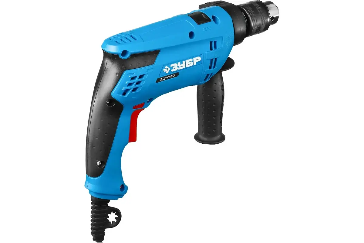 Ударная дрель Зубр ЗДУ-780 ЭРКМ2 - незаменимый бытовой инструмент для сверления отверстий в дереве, стали, кирпиче. Благодаря режиму сверления с ударом дрель легко справляется с бетонными стенами. Плавное начало сверления предотвращает увод сверла и обеспечивает аккуратную работу. Частота оборотов регулируется от 0 до 3000 об/мин плавным нажатием на пусковой курок. Частота ударов при сверлении с ударом достигает 48000 уд/мин. Дополнительная рукоятка служит не только для надежного удержания, но и используется как пенал для оснастки. Также дрель может применяться как шуруповерт при установке соответствующих бит.