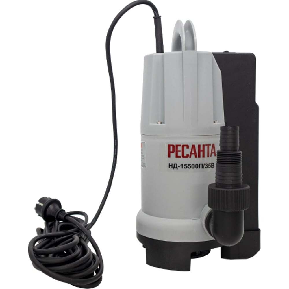 Дренажный насос модели Ресанта НД-15500П/35В используется для перекачивания загрязненной воды, поэтому может применяться в различных ситуациях, в том числе и при затоплении подвалов или иных помещений. Может использоваться для отведения воды из котлованов, различных углублений, траншей, но размер допустимых частиц не должен превышать 35 мм. Присутствие волокнистых примесей допустимо, но должно быть минимальным. Хорошо подходит для откачивания воды средней степени загрязненности. Корпус насоса Ресанта НД-15500П/35В изготовлен из пластика. Устройство комплектуется асинхронным двигателем мощностью 900 Вт, который перекачивает до 258 л/мин. Насос имеет степень защиты IPX8. Это служит доказательством того, что он может длительное время работать при полном погружении в воду. Дренажный насос данной модели имеет встроенный поплавок, который обеспечивает удобное применение в узких емкостях, например, бочке. Вручную при желании можно откачать воду практически полностью. Также устройство оснащено поплавковой системой включения, которая срабатывает автоматически и предупреждает работу устройства на сухом ходу, тем самым, исключая его преждевременный выход из строя. Кабель поплавка можно изменять, что позволяет настроить его работу на нужной глубине.