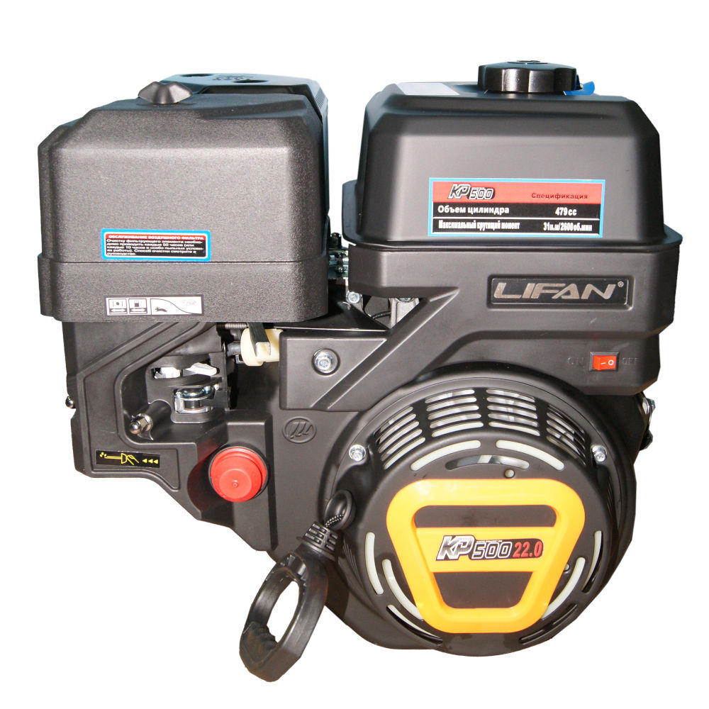Двигатель бензиновый LIFAN KP500 - 4-х тактный, одноцилиндровый, с воздушным охлаждением мощностью 22 л.с. Подходит для установки на культиваторы, мотоблоки, мотопомпы, мотобуксировщики. Использование самых современных материалов в конструкции оборудования уменьшает его вес и повышает производительность. Двигатель без труда можно транспортировать и хранить. Он не займет много места. Во время работы оборудование производит минимум шума и вредных выхлопов.