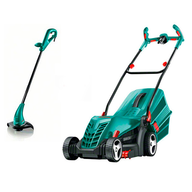 Газонокосилка электрическая Bosch ARM 34 +Триммер электрический Bosch ART23 предназначены для работы в узких и труднодоступных местах. Эта техника превосходно справится со стрижкой травы, расположенной вплотную к бордюрам, стенам знаний и деревьям. Оборудование очень легко транспортировать и хранить благодаря эргономичному дизайну и небольшому весу. Отличная маневренность и возможность осуществлять чуткий контроль за направлением движения позволяют оператору выполнять абсолютно любые операции. Электрическая газонокосилка Bosch станет превосходным выбором для тех, кто ценит качество, работоспособность и надежность.
