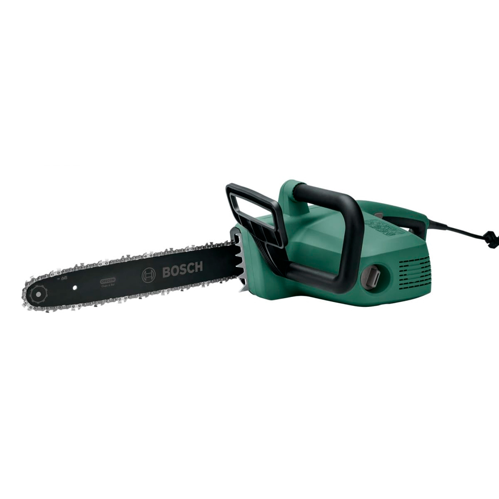 Пила цепная электрическая Bosch UniversalChain 40 – это практичный в использовании сетевой инструмент с эргономичной конструкцией и двигателем мощностью 1800 Вт. Скорость движения цепи 12 м/с, позволяет добиться высоких результатов пиления веток, брёвен, деревьев разного размера в процессе работы. С помощью системы Bosch SDS можно обслуживать – заменять и натягивать цепь без вспомогательного оборудования. Тормоз отдачи отвечает за полную остановку цепи. Пила имеет автоматическую смазочную систему, ёмкость масляного бака 0,25 литра. Агрегат с поперечным расположением двигателя. Длина шины насчитывает 400 мм. Вес инструмента 4,3 кг.