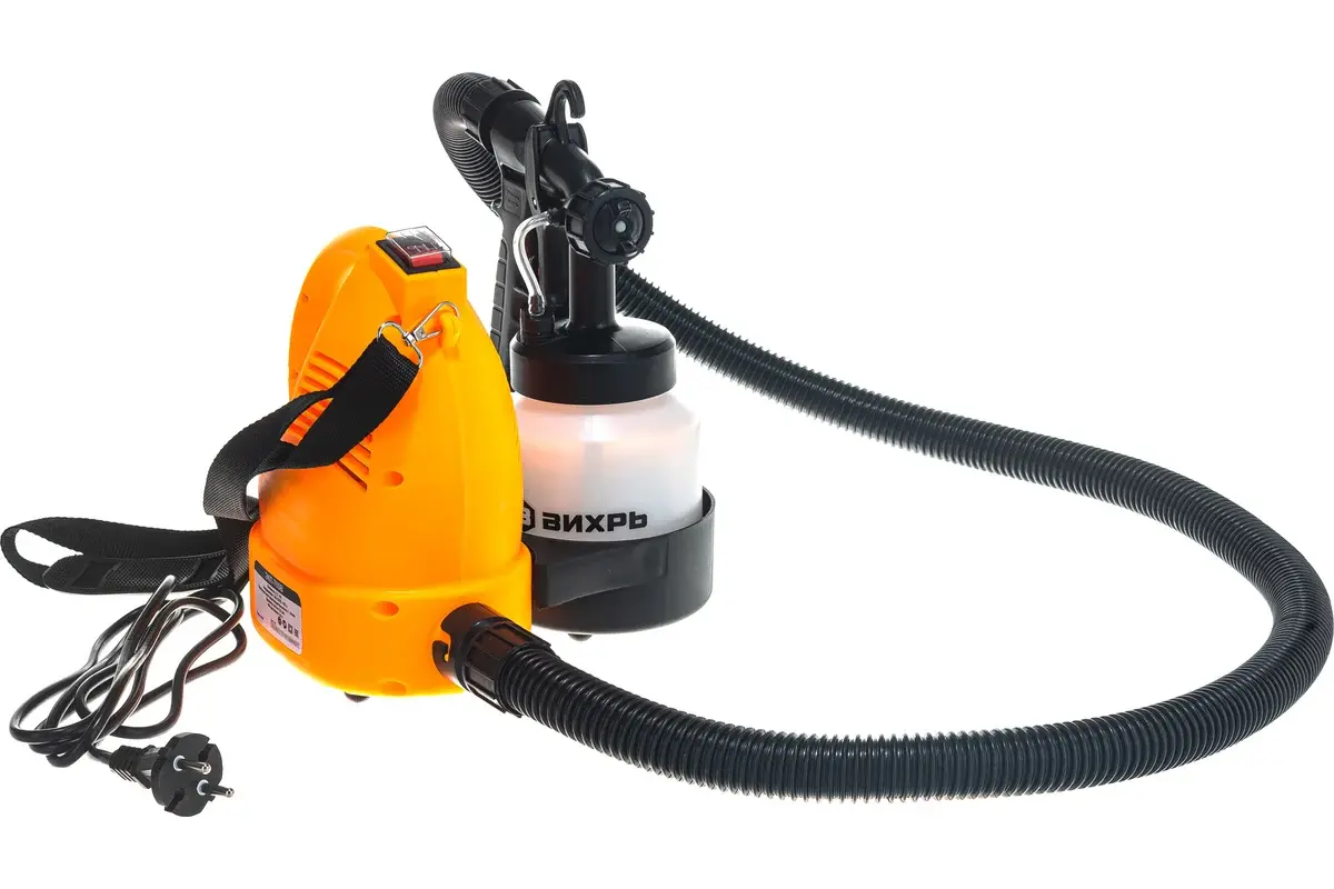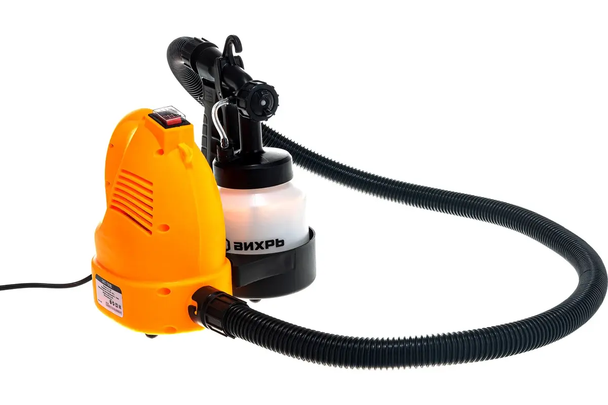 Краскораспылитель Вихрь ЭКП-700В имеет шланг длиной 1,5 м, обеспечивающий возможность маневрирования пистолетом-распылителем. Вынесенное расположение компрессорного блока облегчает процесс длительного использования. В комплекте имеется плечевой ремень и воронка для удобства наполнения бачка. Низкий уровень шума обеспечивает комфорт во время работы. Электрический краскопульт применяется для масляных, эмалевых, пластичных, водоэмульсионных красок, грунтовки, серебрянки и антикоррозийных покрытий.