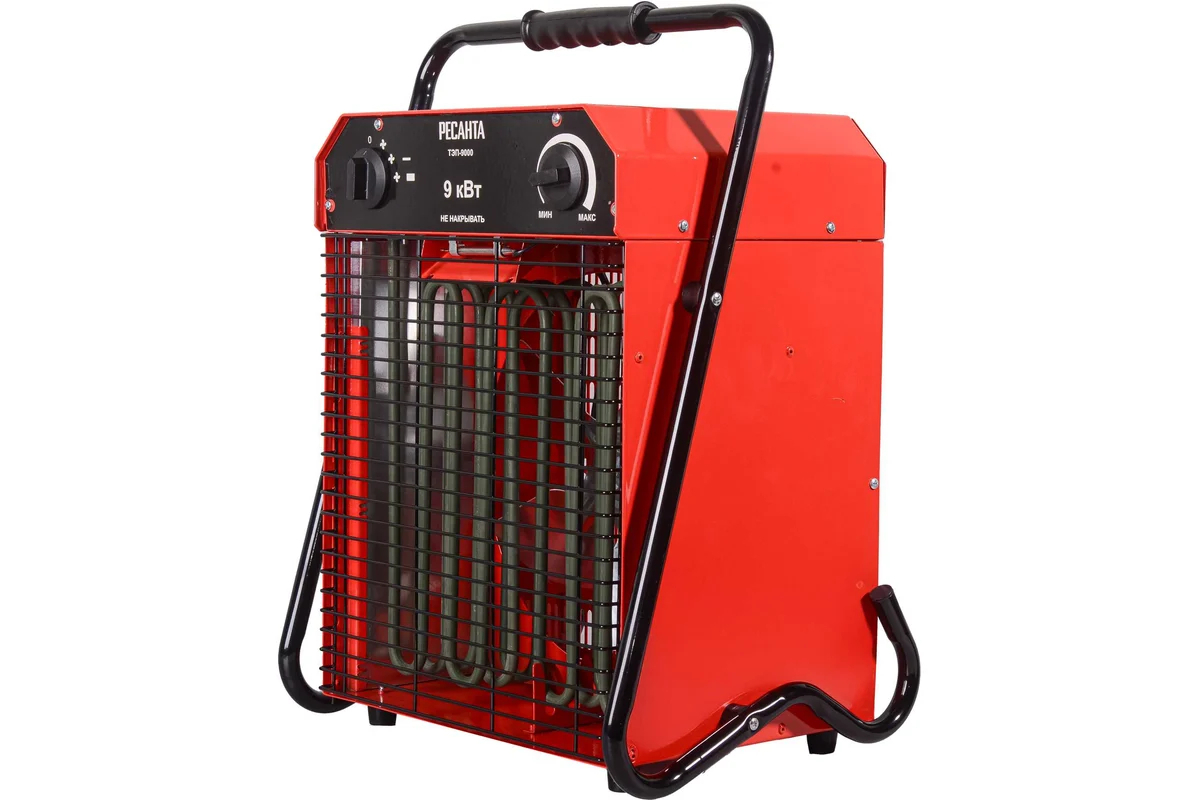Доступны два режима нагрева на мощности 4500 Вт и 9000 Вт, а также возможность работы исключительно в режиме вентилятора, что обеспечивает дополнительную функциональность и экономит электроэнергию.