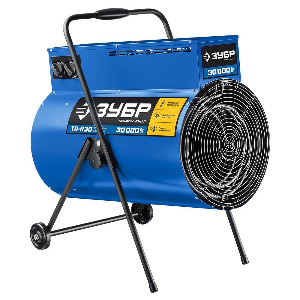 Электрический воздухонагреватель ЗУБР ТП-П30 это профессиональная электрическая тепловая пушка с питанием от трехфазной электрической сети. Она эффективна для быстрого и направленного обогрева складских и производственных помещений, ангаров и мастерских, благодаря большой площади нагревательных элементов и мощным двигателем вентилятора. Надёжная доработанная конструкция, обеспечивают защиту как пользователя, так и тепловой пушки в случае возникновения нештатных ситуаций.