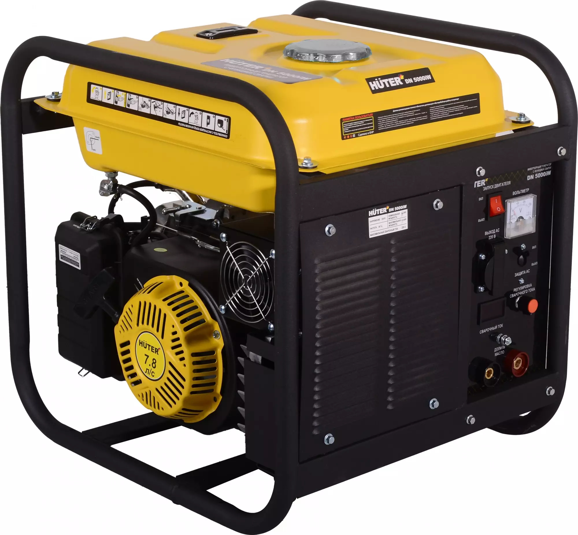 Инверторный бензиновый сварочный генератор Huter DN 5000iW подходит для подключения электрических приборов с постоянным энергопотреблением, без высоких пусковых токов. Генератор может обеспечить электроэнергией потребителей суммарной мощностью до 4200 Вт. Бензогенератор Хутер выдает точную синусоиду с напряжением 220 Вольт. Разбор электроэнергии производится через штатную розетку 220 Вольт / 16 А. Идеально подходит для подключения автоматики котлов отопления, точных электроприборов, компьютера, источников освещения. Инверторный генератор Huter DN 5000iW оснащен функцией сварки. Для подключения сварочных проводов установлен клеммник. Сила тока сварочного модуля регулируется в пределах 30 - 220А.