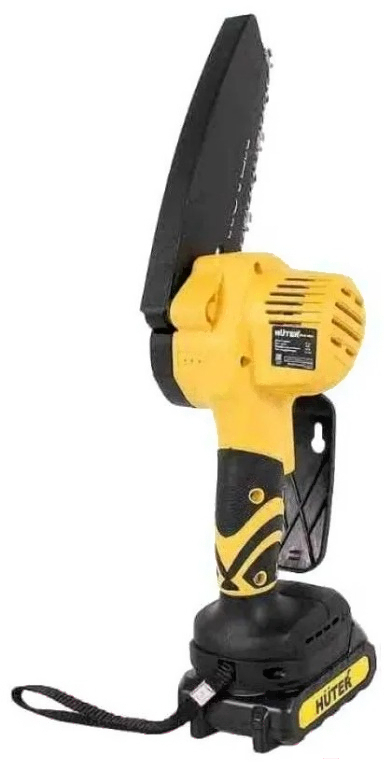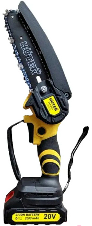 Аккумуляторная цепная пила удобно лежит в руке благодаря прорезиненной рукоятке. Для безопасности оператора предусмотрены защита от случайного пуска и защитный кожух цепи. В модели Huter ELS-2/6Li длина шины составляет 150 мм под цепь из 36 звеньев с шагом ¼. Ее необходимо смазывать каждые 10 - 15 пропилов, т.к. в инструменте отсутствует автоматическая смазка цепи.
