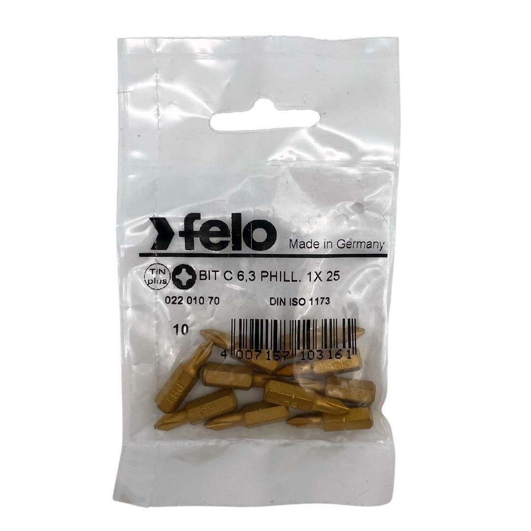 Бита крестовая РН1x25мм Felo серии TiN предназначена для монтажа/демонтажа крепежных изделий, имеющих шлиц PН 1 с помощью шуруповерта или отвёртки под биты, а также с магнитными битодержателями. Биты Felo изготовлены из хром-молибден-ванадиевой стали, закаленной в масле, обеспечивающей бОльшую износоустойчивость по сравнению с обычными битами. Титановое покрытие эффективно защищает от ржавчины и повышает прочность оснастки, повышает рабочий ресурс биты, исключает выскальзывание шлицов из пазов крепежа и повышает скорость выполняемых однообразных процессов. Поставляется в упаковке по 10 шт.