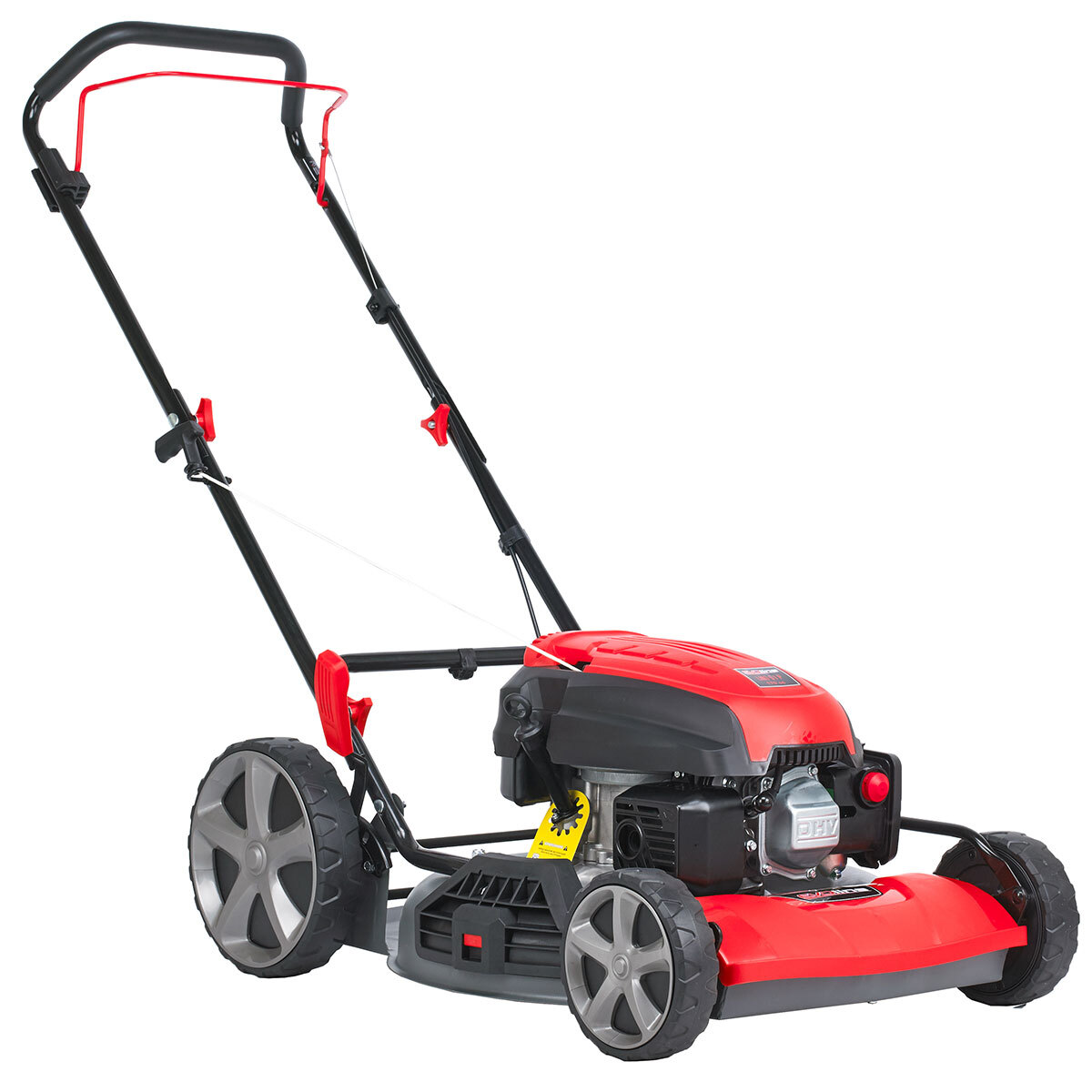 Несамоходная бензиновая газонокосилка EVOline LMG 51 P отличается от 5-ти остальных отсутствием травосборника и наличием бокового выброса, оставляя за собой широкий срез длинной около 51 см. Она оснащена бензиновым двигателем EVOline мощностью 3,9 л.с., обладает повышенной износостойкостью и производительностью при длительной эксплуатации на большой территории.
