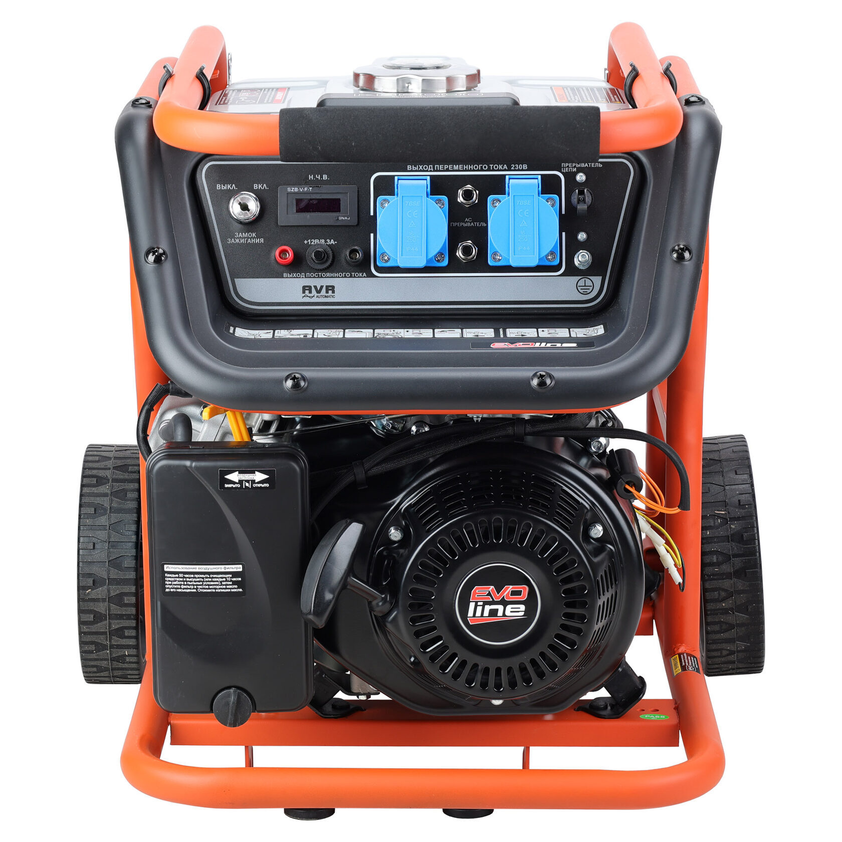 Электрогенератор EVOline KB 5000 – бензиновый однофазный (1 фазный) генератор с максимальной мощностью 4,5 кВА. Силовым агрегатом данной модели является надежный четырехтактный двигатель ZONGSHEN GB 270. Рама выполнена из высококачественной стали, которая служит не только для защиты двигателя, но и для удобной транспортировки электростанции. Объем топливного бака составляет 32 литра, что дает примерно 14 часов непрерывной работы в зависимости от нагрузки. Уровень шума при работе генератора составляет 74,5 дБ. Данная модель идеально подходит как для дома, так и для малого бизнеса. Оснащена транспортировочным комплектом с колесами, счетчиком мото-часов и 2-мя розетками, имеет размер (590 х 440 х 500 мм) и вес (55 кг). Гарантия составляет 2 года.