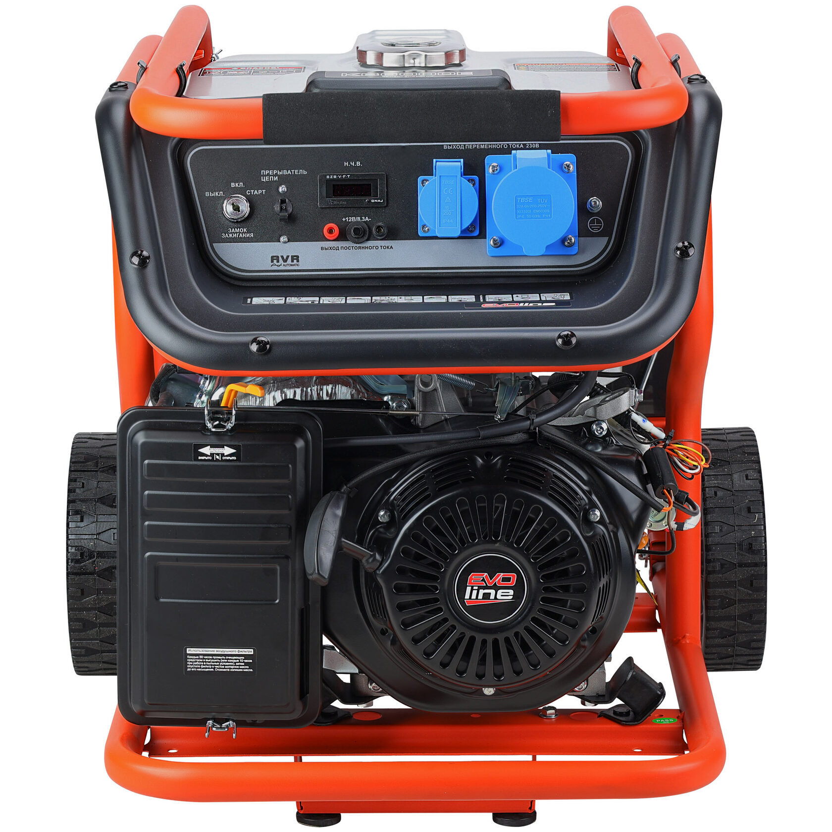 Электрогенератор EVOline KB 6000 E – бензиновый однофазный (1 фазный) генератор с максимальной мощностью 5,5 кВА. Силовым агрегатом данной модели является четырехтактный двигатель ZONGSHEN GB 420 E. Рама выполнена из высококачественной стали, которая служит не только для защиты двигателя, но и для удобной транспортировки электростанции. Объем топливного бака составляет 32 литра, что дает примерно 13 часов непрерывной работы в зависимости от нагрузки. Уровень шума при работе генератора составляет 74,5 дБ. Данная модель идеально подходит как для дома, так и для малого или среднего бизнеса. Оснащена транспортировочным комплектом с колесами, счетчиком мото-часов и 2-мя розетками (одна из которых - силовая, т.е. на 32А), имеет размер (70х53х59 см) и вес (87 кг). Отличие от модели KB 6000 в том, что в данной модели установлен электрический стартер для более комфортного и простого запуска. Гарантия составляет 2 года.