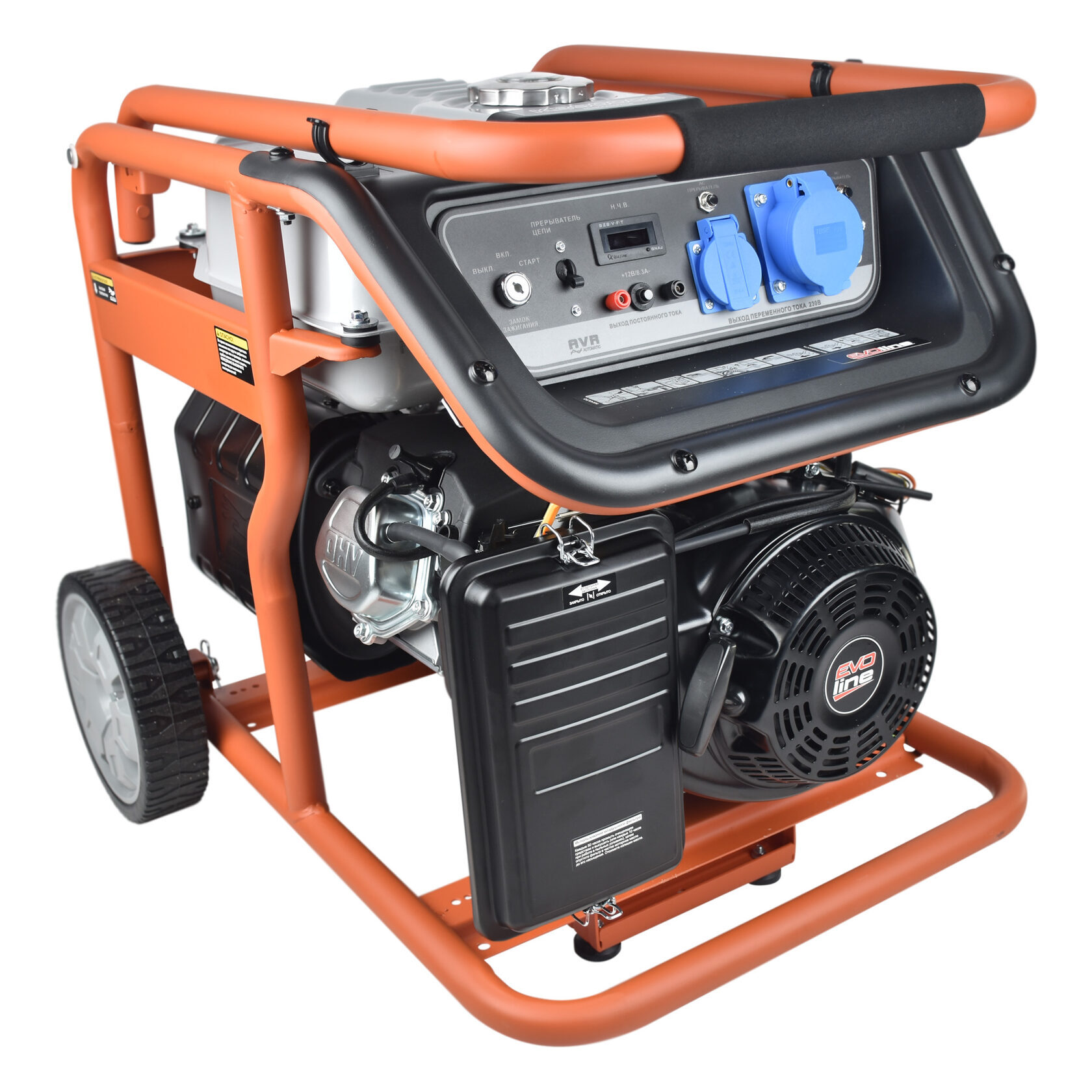 Электрогенератор EVOline KB 9000 E – бензиновый однофазный (1 фазный) генератор с максимальной мощностью 8,5 кВА. Силовым агрегатом данной модели является четырехтактный двигатель ZONGSHEN GB 460 E. Генератор оснащен электрическим запуском. Рама выполнена из высококачественной стали, которая служит не только для защиты двигателя, но и для удобной транспортировки электростанции. Объем топливного бака составляет 32 литра, что дает примерно 11 часов непрерывной работы в зависимости от нагрузки. Уровень шума при работе генератора составляет 76,5 дБ. Данная модель идеально подходит как для дома, так и для малого или среднего бизнеса. Оснащена транспортировочным комплектом с колесами, счетчиком мото-часов, электростартером и 2-мя розетками (одна из которых - силовая, т.е. на 32А), имеет размер (700х530х590 мм) и вес (99 кг). Гарантия составляет 2 года.