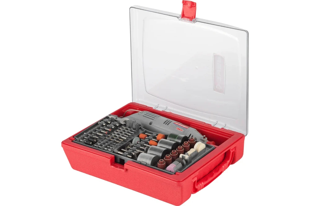 Гравер ЗУБР ЗГ-130ЭК H176 + набор мини-насадок 176 предметов позволяет в домашних условиях осуществлять тонкую чистовую высокоточную обработку различных материалов без применения дорогостоящего профессионального оборудования. Неоспоримым преимуществом шлифовально-полировальных инструментов ЗУБР являются их высокая производительность, большой рабочий ресурс и универсальность применения при обработке различных материалов.