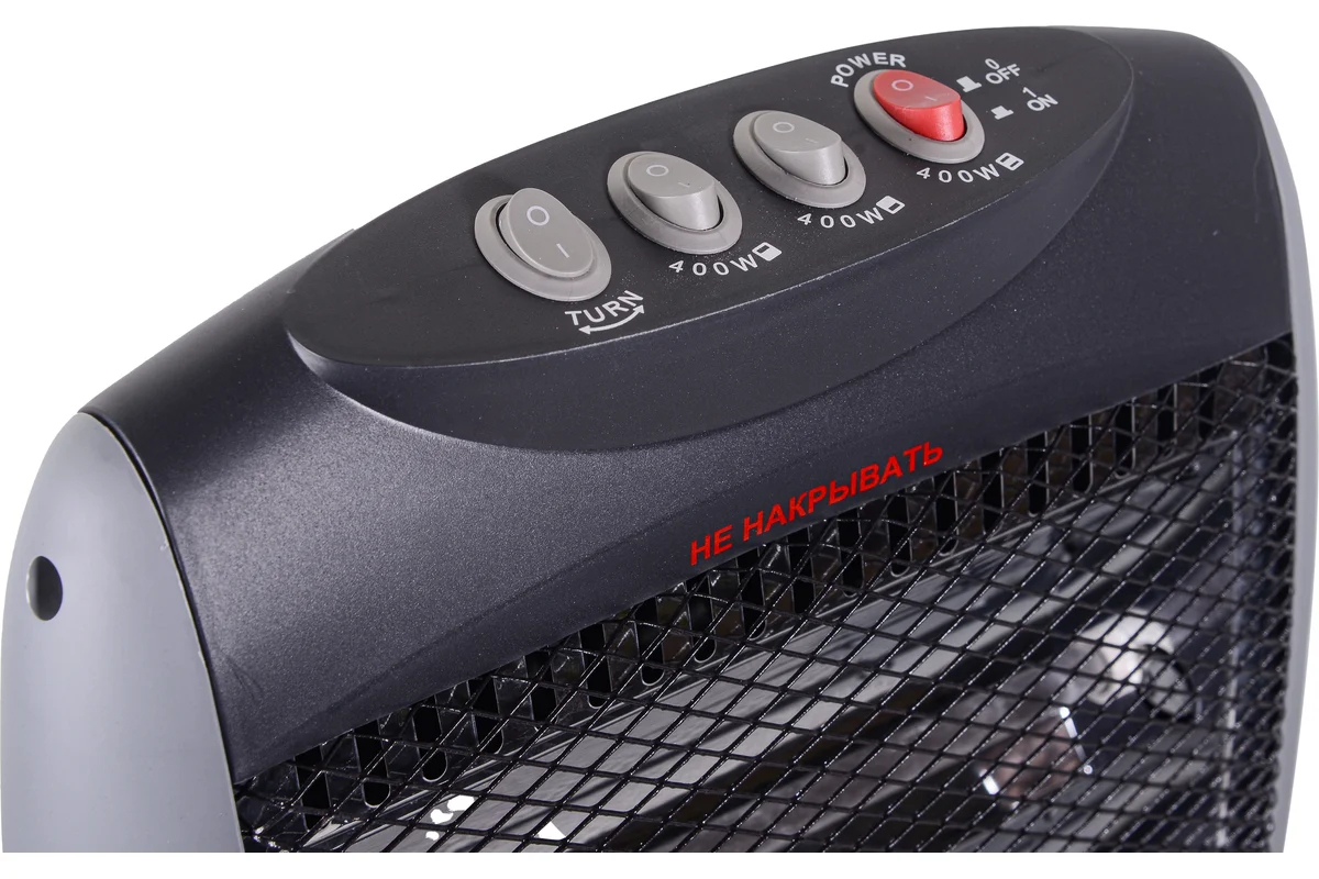 Три режима мощности (400/800/1200 Вт) позволяют подобрать оптимальное значение для конкретных условий помещения. Устройство оборудовано функцией автоматического отключения при падении, что повышает безопасность использования. К дополнительным удобствам относится поворотная конструкция, расширяющая зону распространения тепла и улучшающая эффективность распределения излучения по помещению.