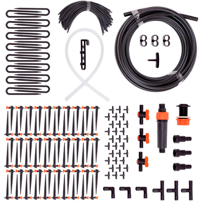 Капельный полив ЖУК от емкости на 60 растений (5974-00) с регулируемыми капельницами предназначен для организации дозированной подачи воды в прикорневую зону растений, требующих «тёплого» полива (тыква, томат, огурец, кабачок, перец, баклажан). Капельный полив можно использовать как в парниках и в теплицах, так и в открытом грунте. Комплект на 60 растений рассчитан для организации полива на площади 18 кв.м или на грядку размером 6x3м при посадке растений в 4 ряда.