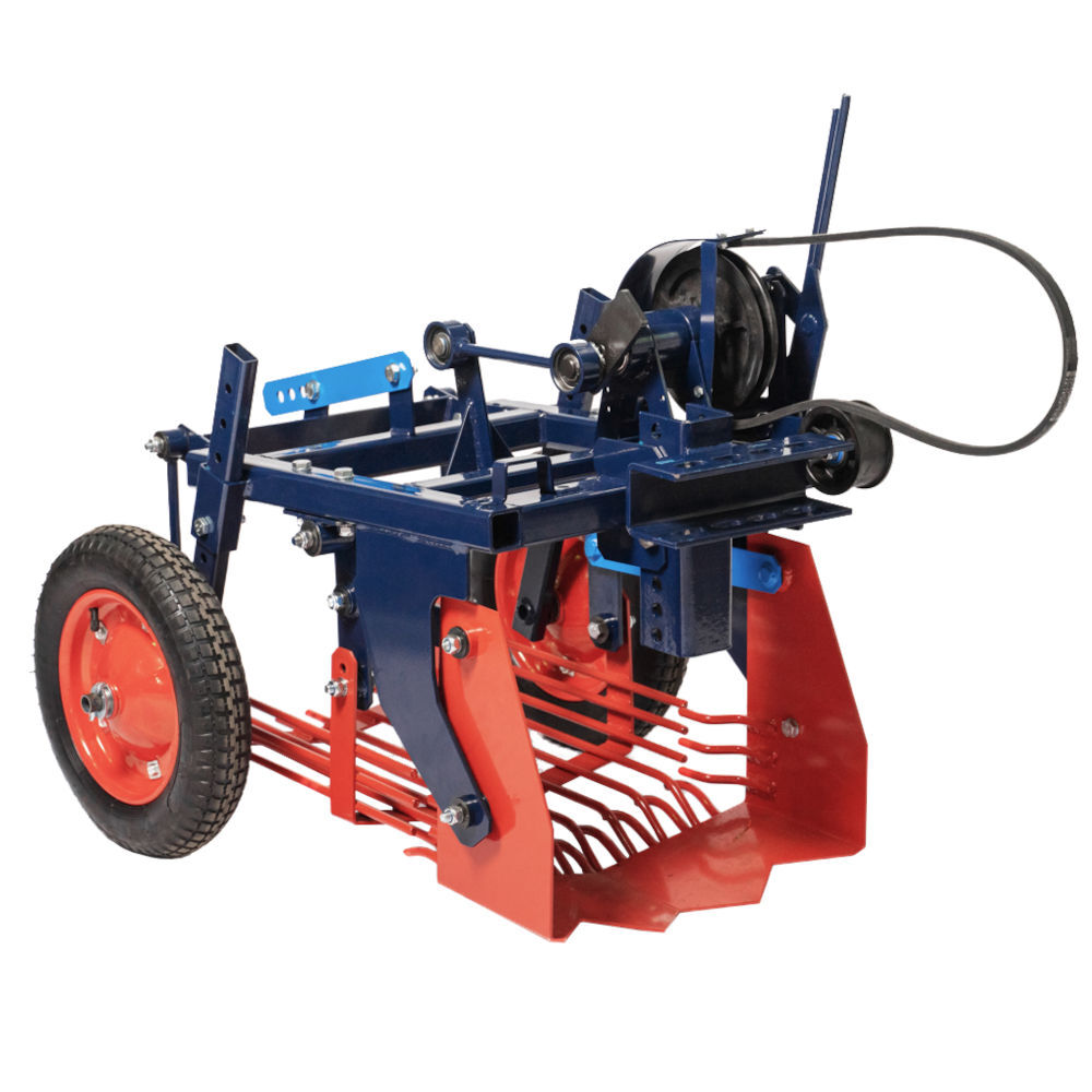 Соединение с мотоблоком производится при помощи комплекта для установки шкива картофелевыкапывателя 0.004.00.0020, который поставляется вместе с изделием.