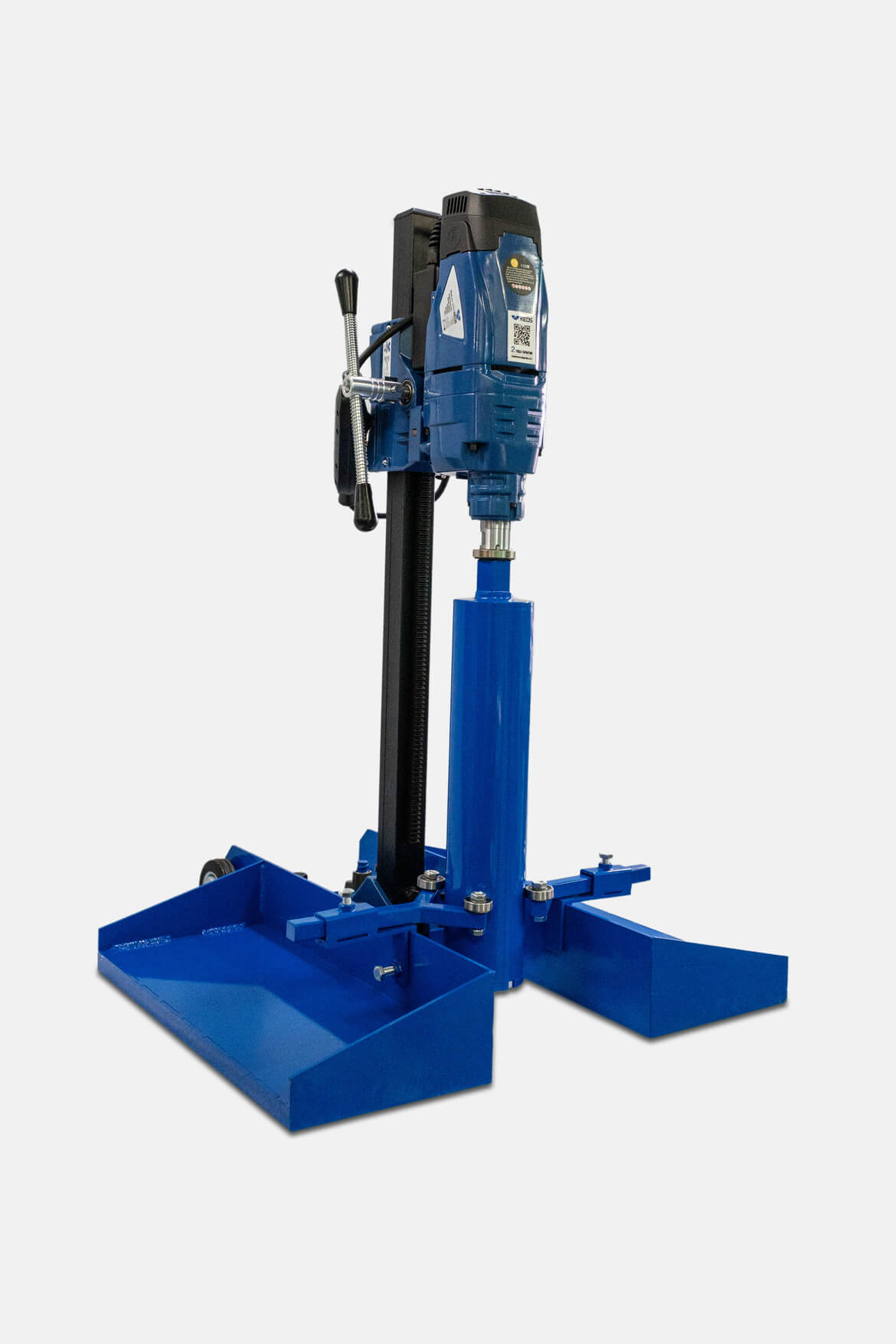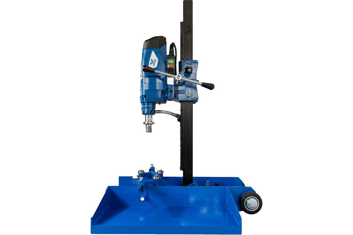 В состав комплекта входит мотор KS-200 мощностью 2,4 кВт, выполненный в металлическом корпусе. Он оснащен масляным редуктором для увеличения срока службы, предохранительной муфтой для защиты от заклинивания коронки и блоком PRCD для безопасности от утечек тока. Двойная посадка шпинделя (½" и 1¼" дюйма) позволяет использовать различные коронки без дополнительных переходников. Для точной установки оборудования предусмотрен пузырьковый уровень на верхней крышке двигателя.