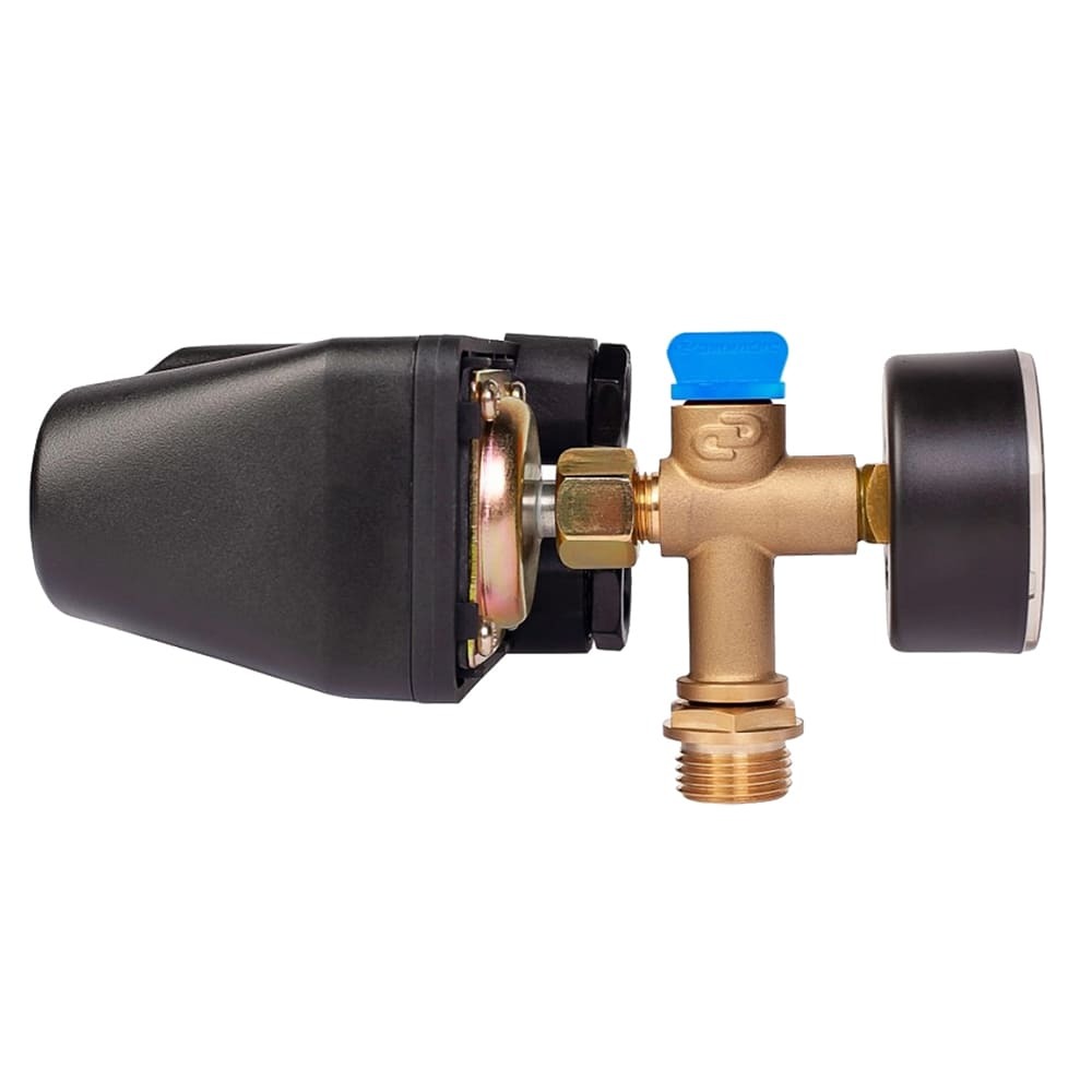 Комплект автоматики на баке «КАБ» используется для работы в системах водоснабжения совместно с гидроаккумулятором. Установленное на штуцере реле давления представляет собой двух-контактное реле коммутации электрических цепей, срабатывающее по величине давления воды.
