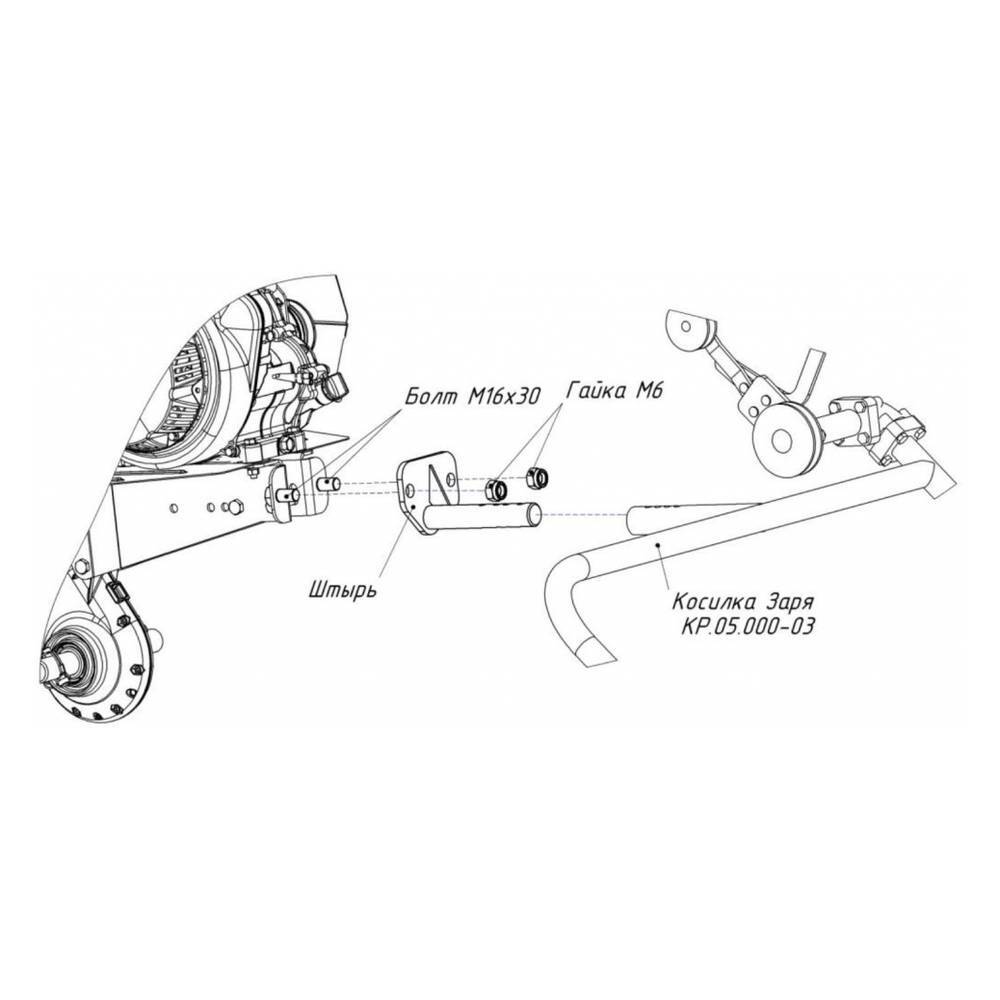 Комплект установки косилки Заря для НЕВА МБ-23 МультиАгро. Комплект предназначен для установки роторной косилки «ЗАРЯ» (КР.05.000.03) на мотоблок «НЕВА» МБ23 МультиАГРО. В комплект входят следующие детали: