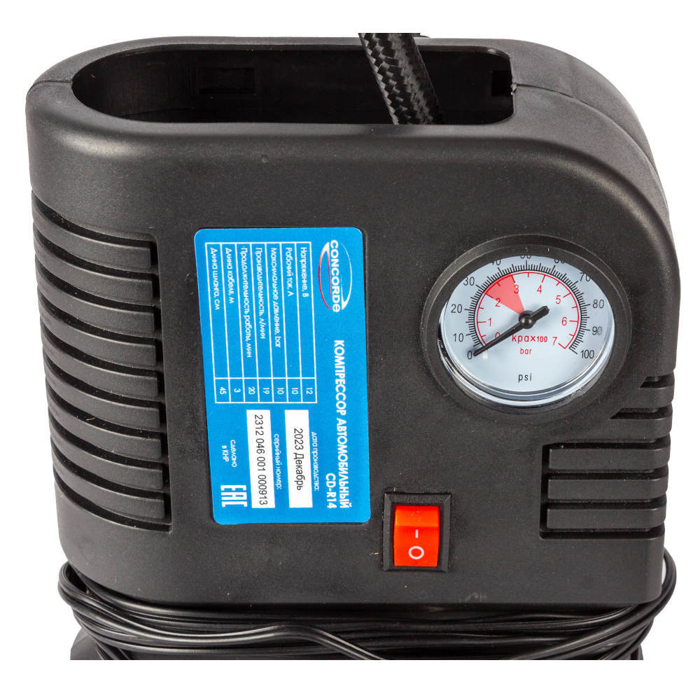 Компрессор Concorde CD-R14 предназначен для подкачки шин легковых автомобилей и внедорожников. Устройство характеризуется высоким давлением на выходе (до 10bar), низким уровнем шума и вибраций, малыми габаритными размерами и весом, а так же превосходным качеством изготовления. Компрессор так же подходит для накачивания резиновых лодок, надувных игрушек и матрацев.