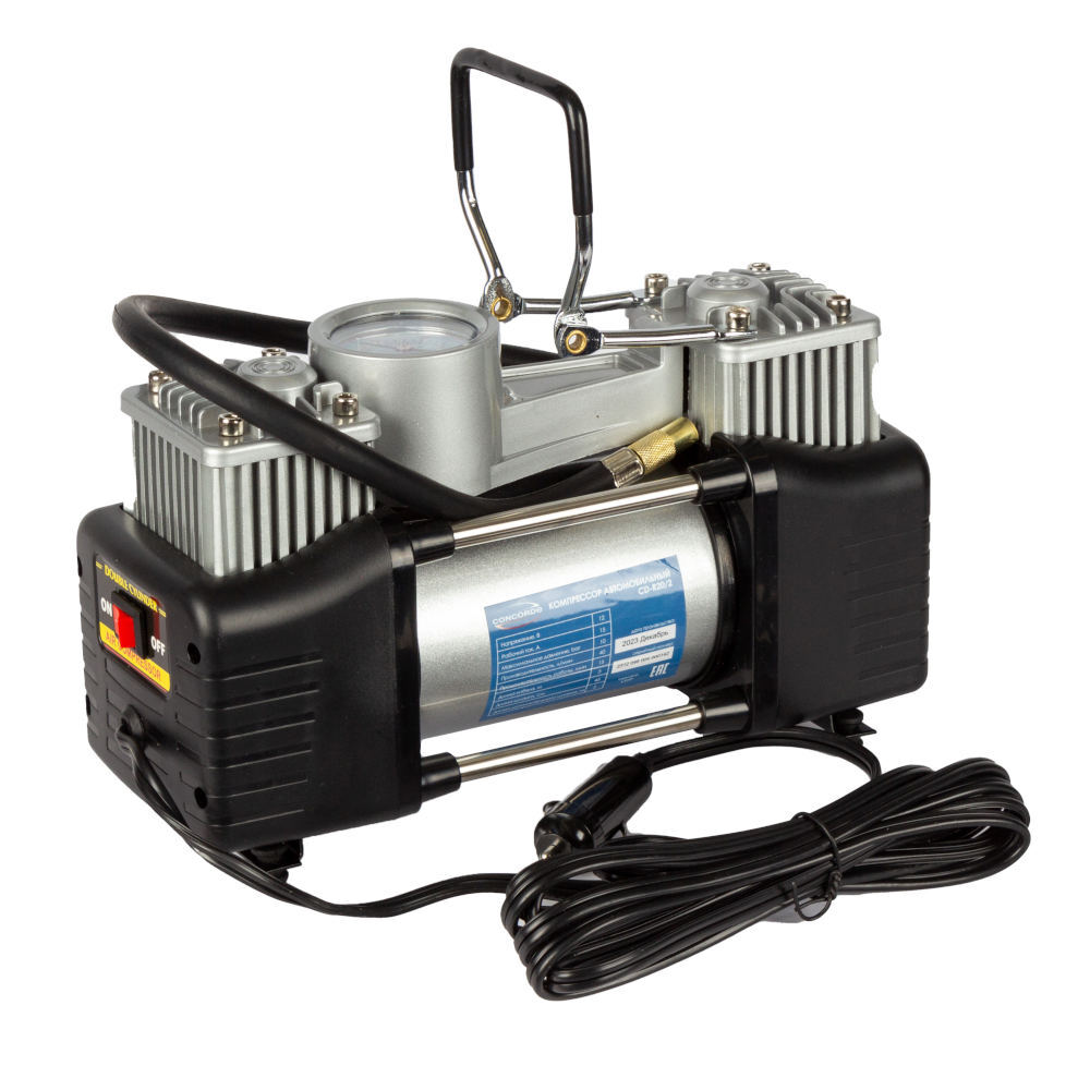 Компрессор Concorde CD-R20/2 предназначен для подкачки шин легковых автомобилей и внедорожников. Устройство характеризуется высоким давлением на выходе (до 10bar), низким уровнем шума и вибраций, малыми габаритными размерами и весом, а так же превосходным качеством изготовления. Компрессор так же подходит для накачивания резиновых лодок, надувных игрушек и матрацев.