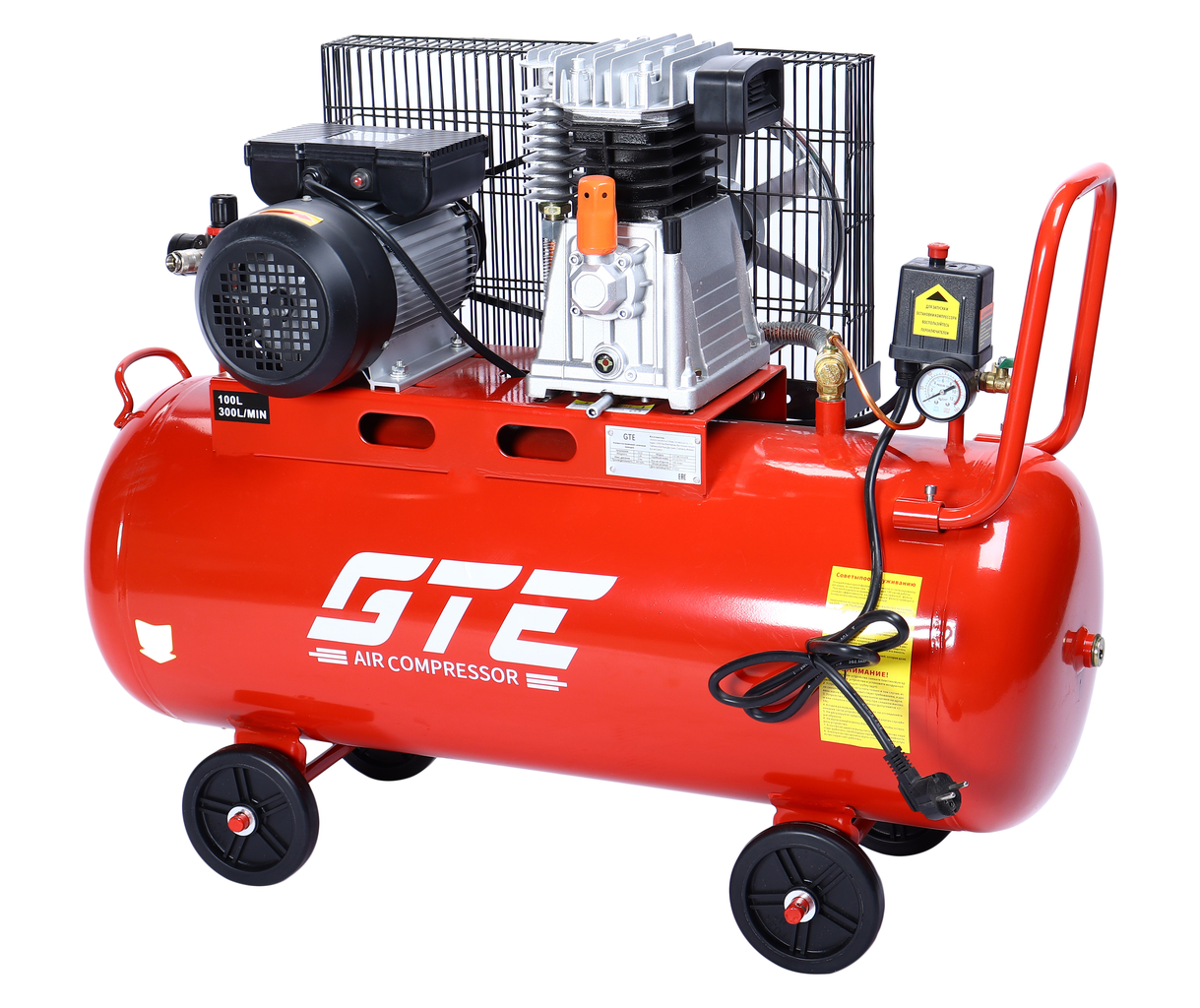 Компрессор поршневой с ременным приводом одноступенчатый 380 В, ресивер 100 л, 300 л/мин.