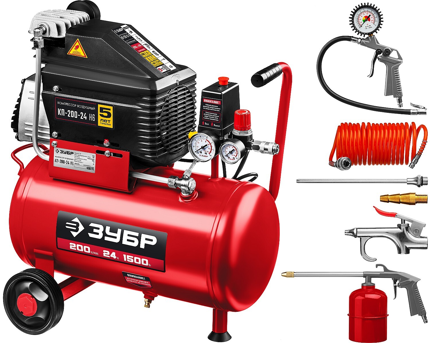Безмасляный воздушный компрессор ЗУБР КП-200-24 Н6 (200 л/мин, 24 л, 1500 Вт) обеспечивает чистый сжатый воздух без масляных примесей для покраски, подкачки шин и очистки техники. В комплекте — набор аксессуаров для быстрого старта. Прочный корпус на колесах гарантирует мобильность, а полупрофессиональная конструкция одинаково эффективна в быту, на даче и в условиях мастерской. Компактный, надежный и готов к решению задач любого уровня — от домашнего ремонта до профессионального использования, сохраняя чистоту воздуха и простоту эксплуатации.