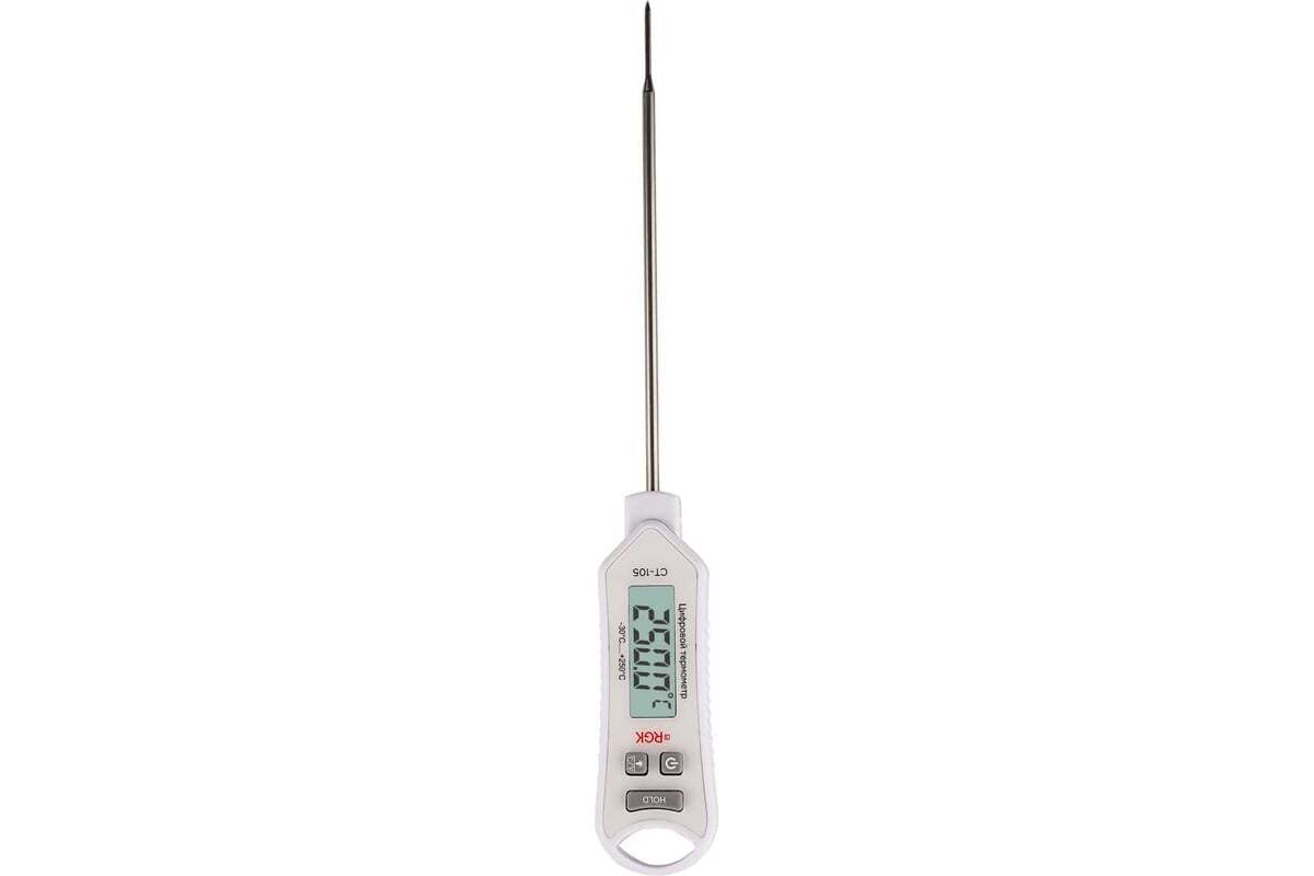 Термометр цифровой RGK CT-105 представляет собой компактный измерительный прибор в моноблочном исполнении, предназначенный для определения внутренней температуры материалов, продуктов и прочих целевых объектов с помощью погружного зонда контактным методом. Оболочка датчика изготовлена из химически нейтральной нержавеющей стали пищевого класса AISI 304, благодаря чему инструмент допускается для работы с продуктами питания. Удлиненный размер измерителя позволяет находиться на удалении от источников тепла при выполнении замеров, что делает данную модель оптимальным выбором для контроля температурных режимов при приготовлении мяса, рыбы, колбасной продукции и т.п.