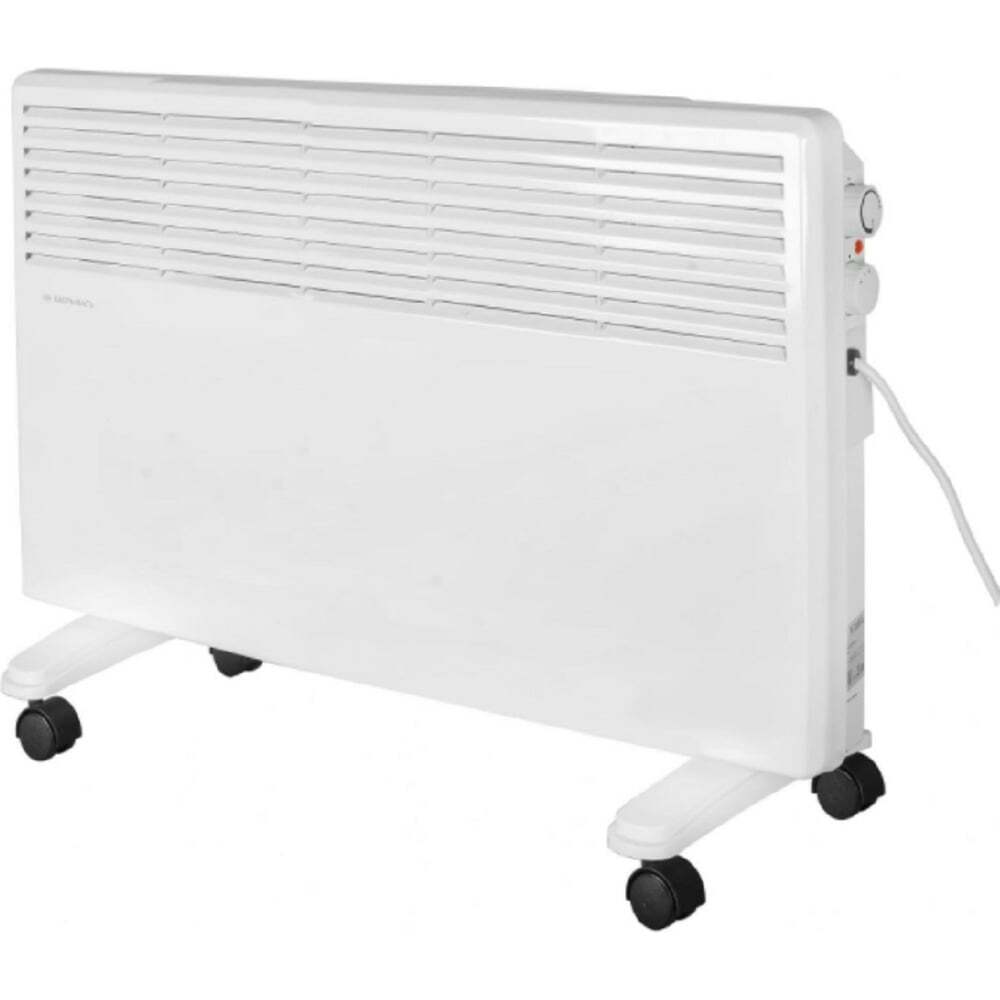 Электроконвектор Eurolux OK-EU-2000 с мощностью 2000 Вт обогревает помещения площадью до 25 кв. м. Благодаря классу защиты IP24 с устойчивостью к пыли и брызгам прибор можно использовать в помещениях с повышенной влажностью, а автоматическое отключение при перегреве делает его эксплуатацию в жилых комнатах безопасной.Конвектор работает от сети 220-230В. Внутри расположен монолитный Х-образный нагревательный элемент. Он бесшумен, состоит из алюминиевого сплава и обладает высокой теплоотдачей. Холодный воздух, проходя через нагреватель, расширяется и превращается в теплый поток, который через специальные жалюзи в решетке равномерно рассеивается по пространству. Естественная конвекция позволяет обогревать всю площадь, не сосредотачивая тепло на стенах, благодаря чему электроконвектор является экономичным источником энергии.Устройство имеет удобную и понятную регулировку степени нагрева и автоматически поддерживает заданную мощность для комфортного климата в вашем доме или офисе. Eurolux OK-EU-2000 можно установить и перемещать за счет опор на колесах. При необходимости подставки убираются, и конвектор фиксируется на стене с помощью крепления. Вес устройства составляет 5,7 кг.