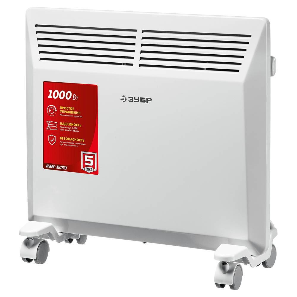 Электрический конвектор ЗУБР КЭМ-1000 1 кВт - подойдет для обогрева любых домашних и офисных помещений площадью до 15 м2. Прибор предназначен для обогрева помещений различного типа. Модель имеет удобный механический терморегулятор для установки необходимой температуры обогрева. Конвектор подходит как для напольного, так и для настенного монтажа.