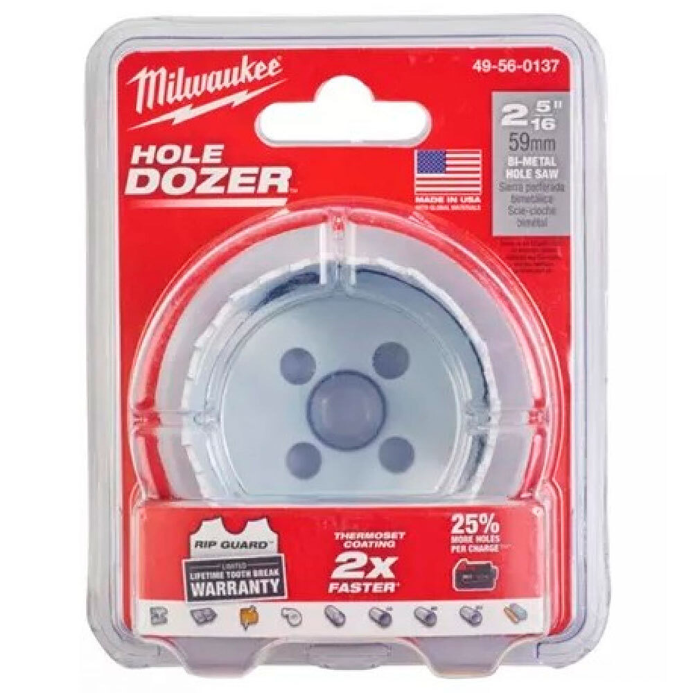 Коронка Milwaukee 59мм биметаллическая (49560137) для применения вместе с перфораторами или дрелью. Подходит для резки практически всех материалов: сталь с моментом прочности до 1000 Н/мм2, нержавеющая и кислостойкая стали, чугун, дерево, гипсокартон, ПВХ, цветные металлы, алюминий, МДФ, сендвич-материалы. Толщина стали корпуса коронки 1.27мм сводит к минимуму повреждения.