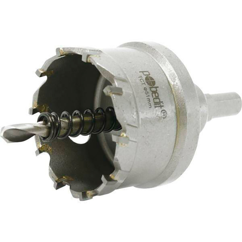 Коронка с твердосплавными пластинами Pobedit 51мм (4848451) используется для сверлильных работ по черным, цветным металлам, пластику и другим материалам. Глубина сверления до 28мм. Режущие пластины изготовлены из сплава карбид-вольфрама, корпус из высокоуглеродистой стали. Режущие пластины твердостью 91-92 HRC. Трёхгранный хвостовик. Специальная пружина на центрирующем сверле, не допускающая застревания шлама.
