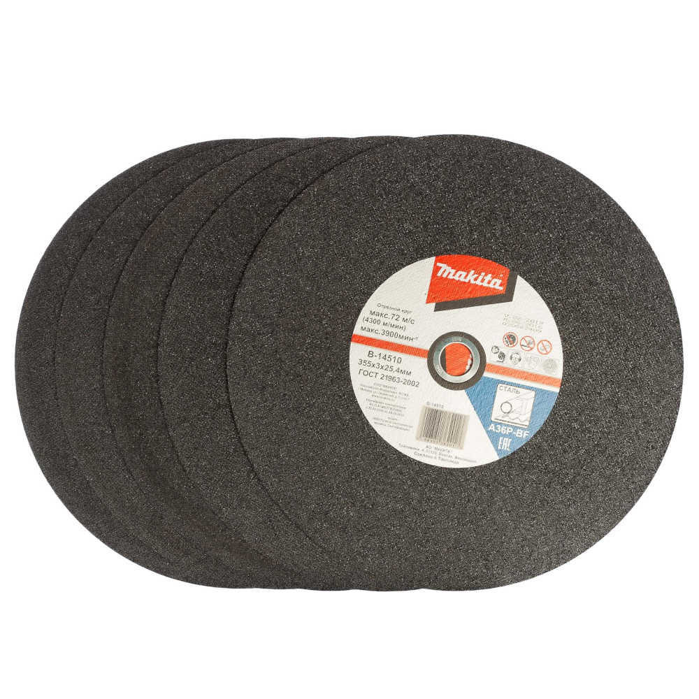 Круг отрезной по металлу Makita 355x3х25.4мм 5шт(B-14510-5) для отрезных машин с посадочным отверстием 25,4мм.