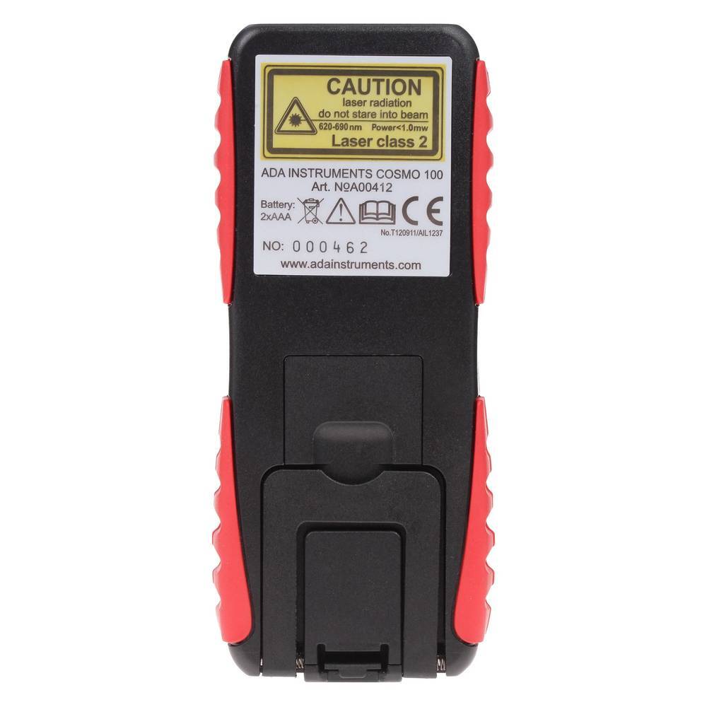 Рулетка лазерная ADA COSMO 100 — это профессиональный лазерный дальномер, особенностью которого является простота и удобство в использовании. Главное достоинство этого профессионального прибора — измерение расстояний при любых условиях освещенности. Даже при ярком солнце ADA COSMO 100 измеряет расстояние до 100 метров с высокой точностью. Максимальная погрешность измерения составляет всего 1,5 миллиметра.