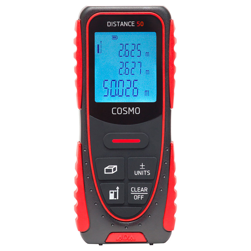 Измеритель длины ADA Cosmo 50 — это профессиональный лазерный дальномер, особенностью которого является простота и удобство в использовании. Главное достоинство этого профессионального прибора — измерение расстояний при любых условиях освещенности. Даже при ярком солнце ADA COSMO 50 измеряет расстояние до 50 метров с высокой точностью. Максимальная погрешность измерения составляет всего 1,5 миллиметра.