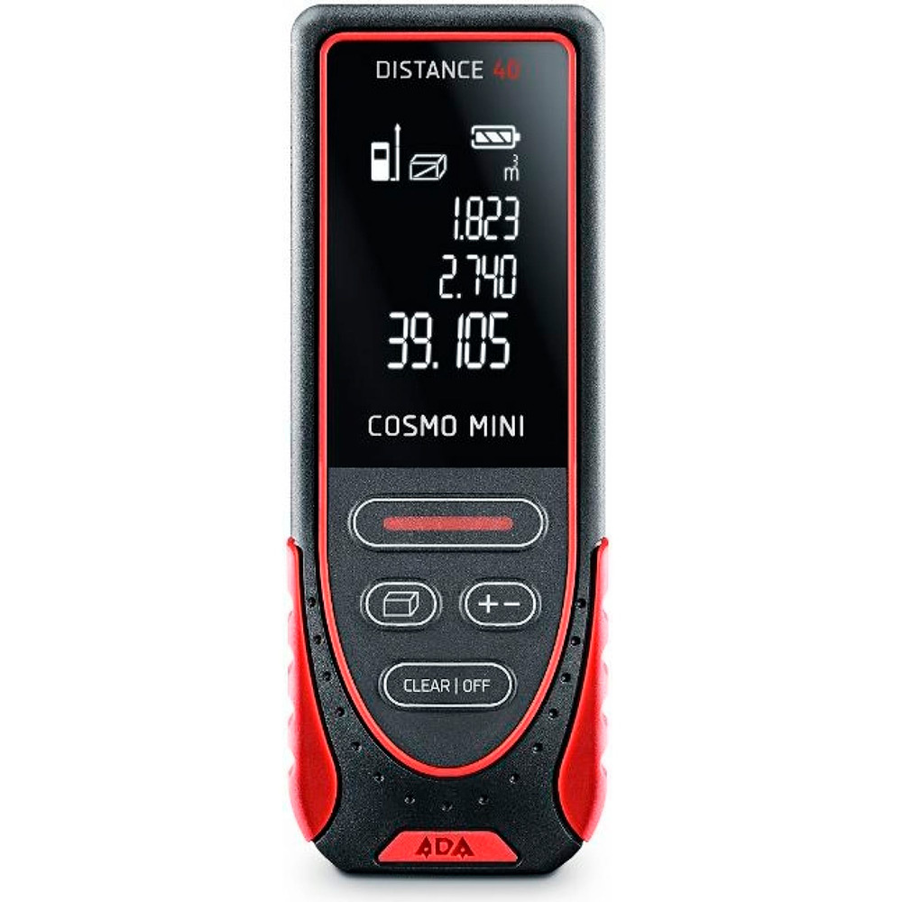 Измеритель длины лазерный ADA Cosmo MINI 40 для измерений до 40 метров. Оптимальная модель с минимальным набором функций для измерений и расчетов. Все измерения производятся при помощи 4 кнопок. Первая — измерение, она же включение и переход в непрерывный режим, вторая кнопка для выбора функций: измерение площади, объема, измерения «по Пифагору». Третья - функция сложения и вычитания. Четвертая - отмена и выключение. Погрешность измерения ±2,0 мм.