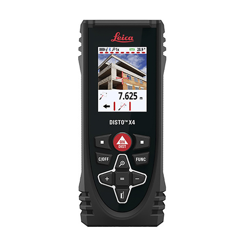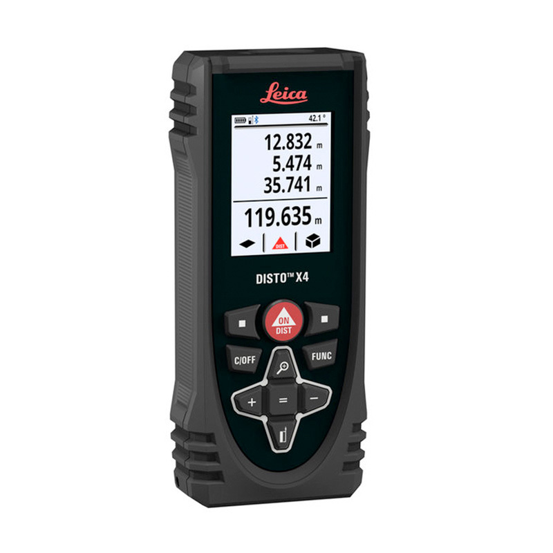Дальномер лазерный Leica Disto X4 с защитой от пыли и влаги IP65. Возможность измерения на расстоянии 500 футов (150 м). В качестве источника питания используются 2 батареи AA.