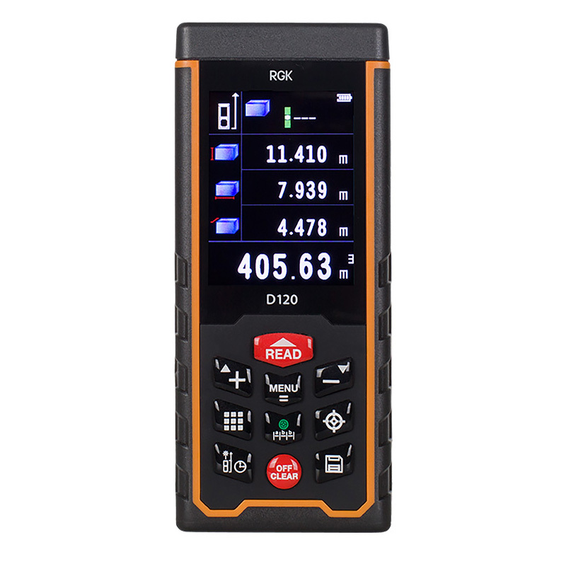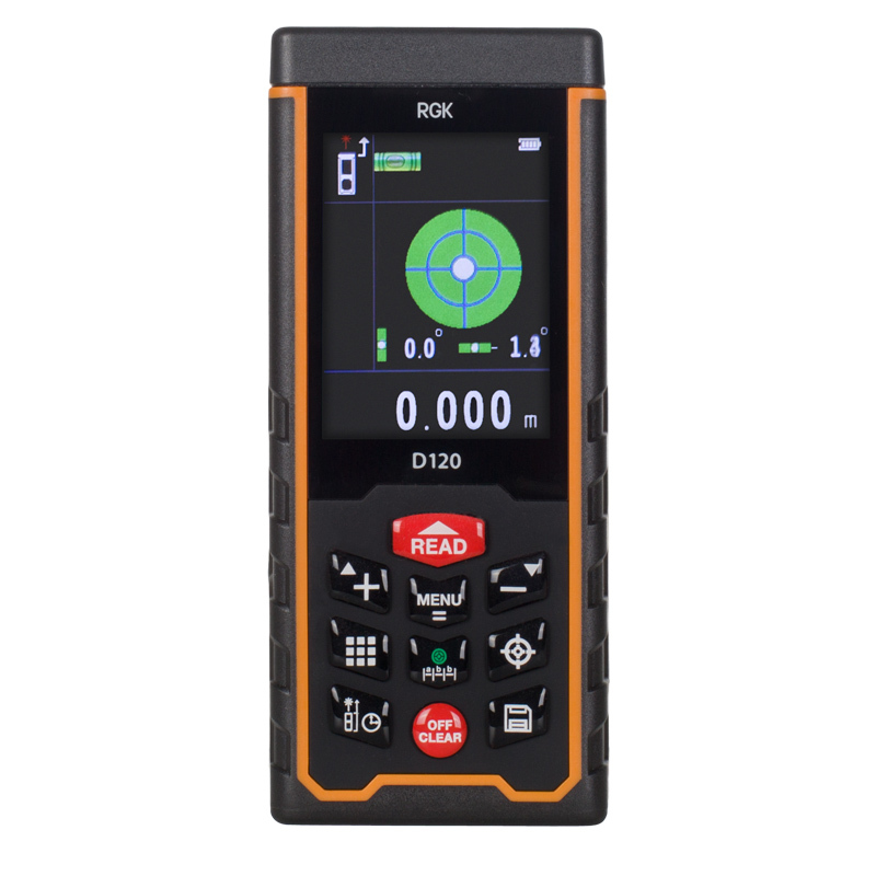 Лазерный дальномер RGK D120 — измерительный прибор с цифровым видоискателем для определения расстояний до 120 метров в помещениях и на улице. Обладает широким функционалом и возможностью подключаться напрямую к коммуникатору или ПК. К данному прибору подходят элементы питания 1,5В, тип ААА (3 шт).